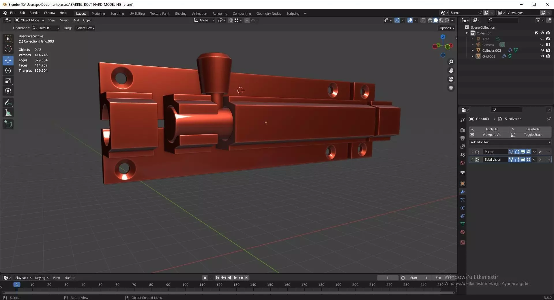 The total number of polygons (flat shapes) that make up the 3D model.