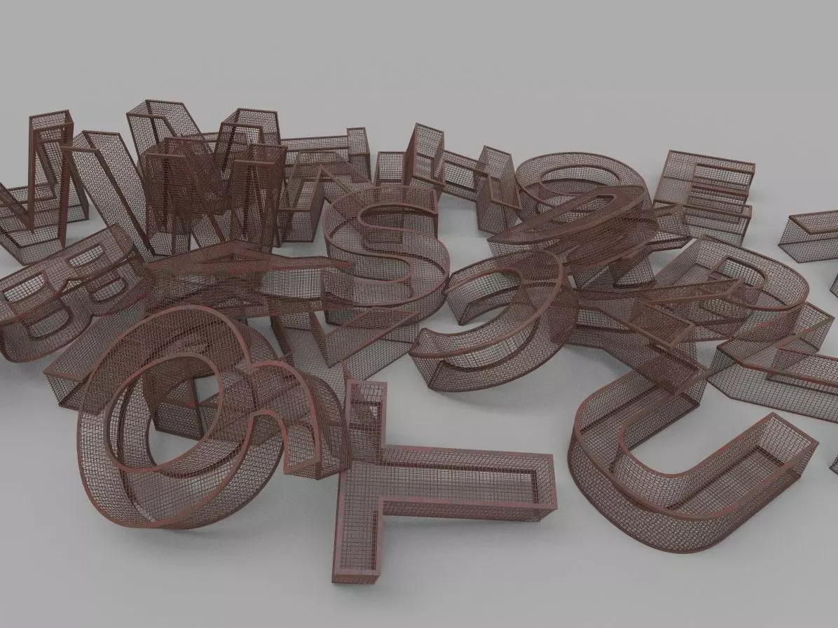 Cage alphabet design.Design these letters in cinema 4D and texture them in Substan painter.UVS, low poly and 4K resolved textures.In the file alphabet.rar all the letters are found separately with their respective FBX, CD4 files and textures.The Letter Z includes the Sustance Paiter file..Cd4 and .fbx filesEach letter has its Polygon. Depending on the letter, the polygons range from 9000 to 50000.Do not hesitate to contact me for any question. Numbers could be included if you wish.