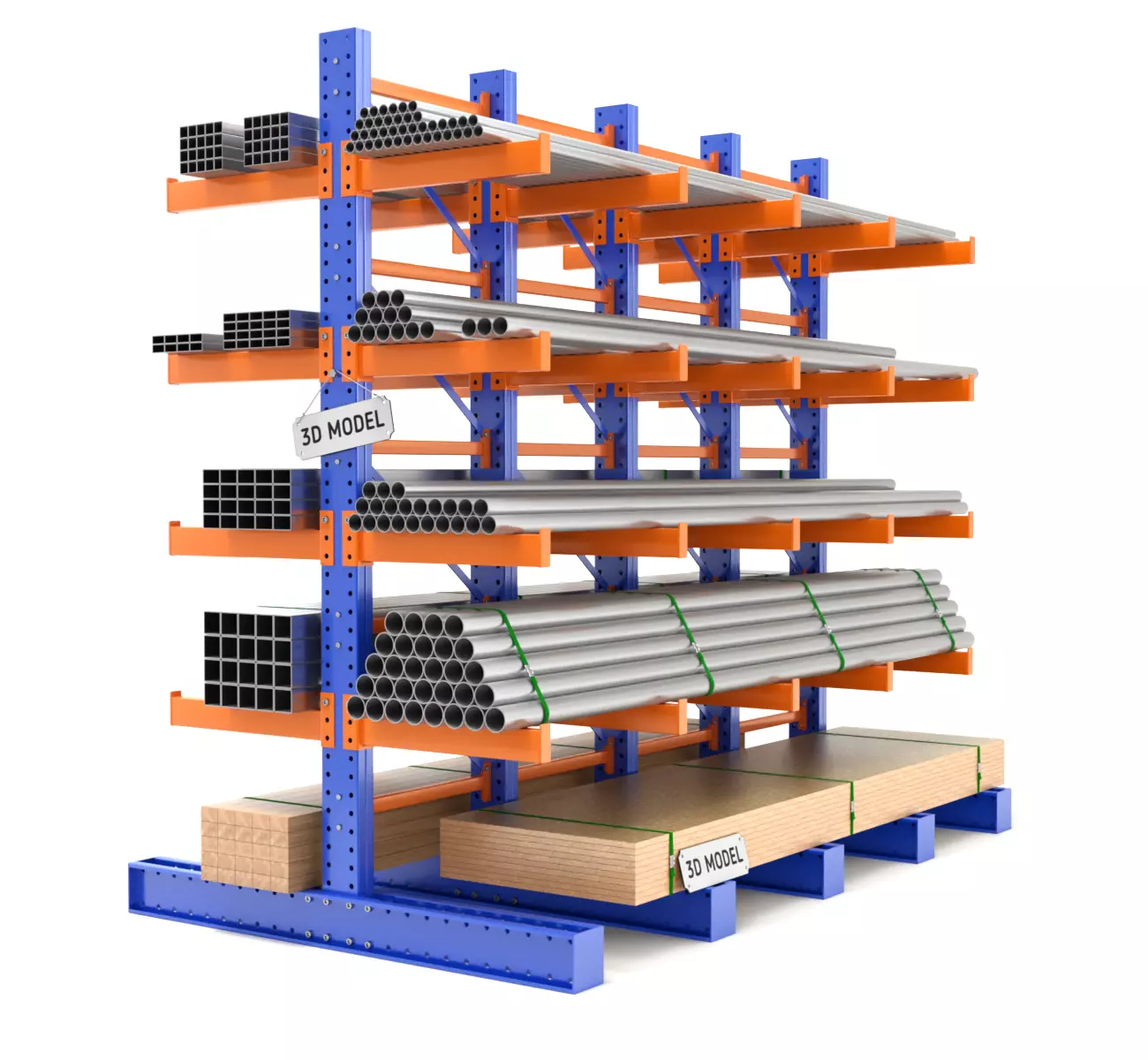 The model has material settings that define how surfaces look (color, shine, transparency, etc.).