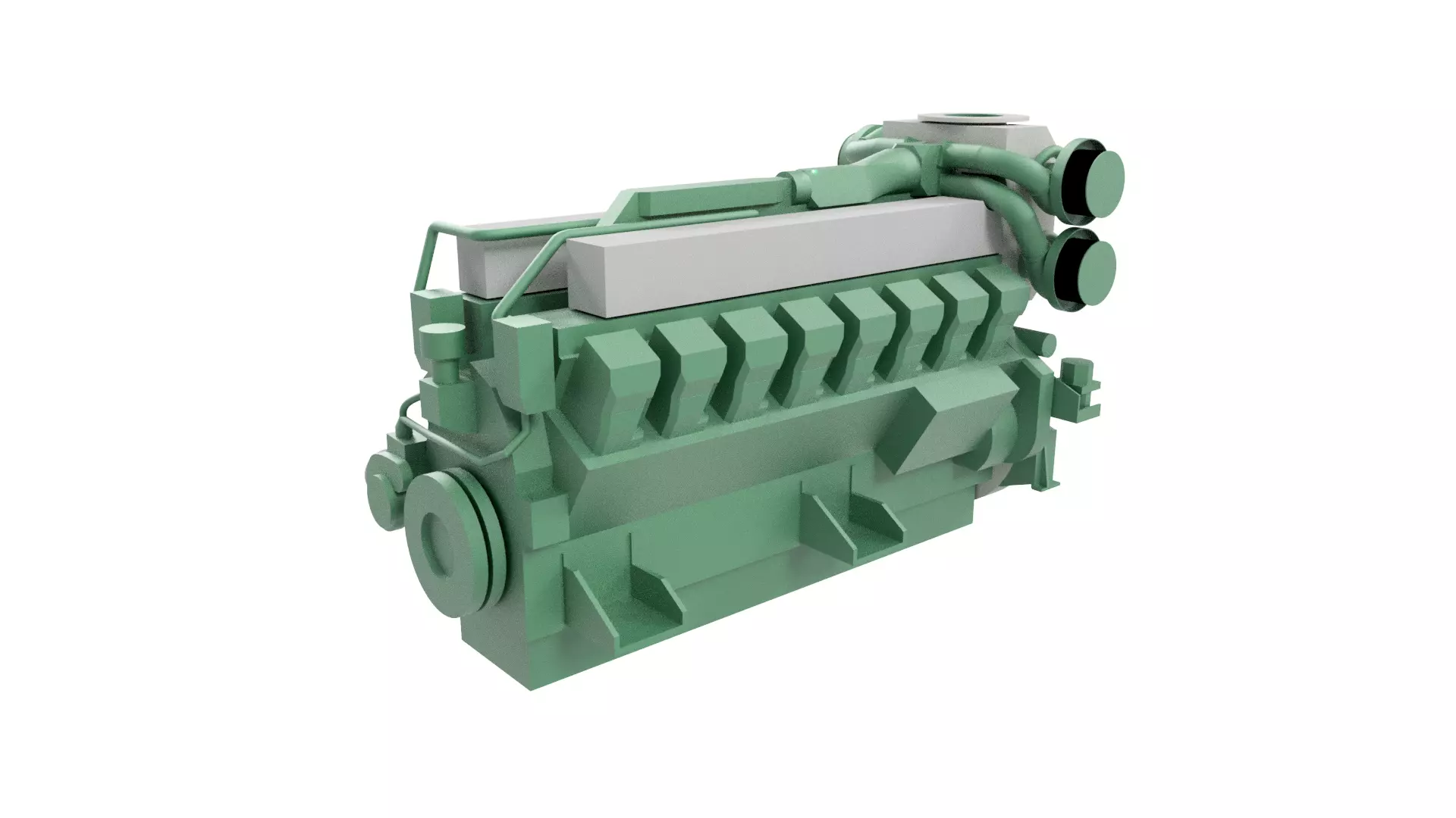 This 3D model depicts a high‑capacity industrial engine built for demanding environments such as power generation, marine systems, or heavy machinery. The design emphasizes structural clarity and mechanical logic: each cylinder unit, manifold, and housing element is shaped to reflect how real industrial engines are arranged, without tying the model to any specific manufacturer.