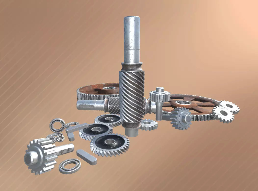 Set of various lowpoly PBR (specular) gears and mechanical accessories.