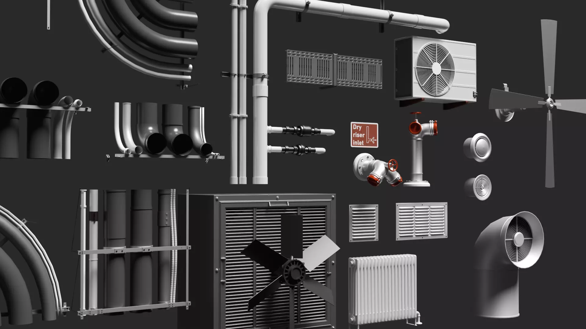 HVAC and Ventilation Modular Pack 22 Models Pipes Fans and Vents Low-poly 3D model