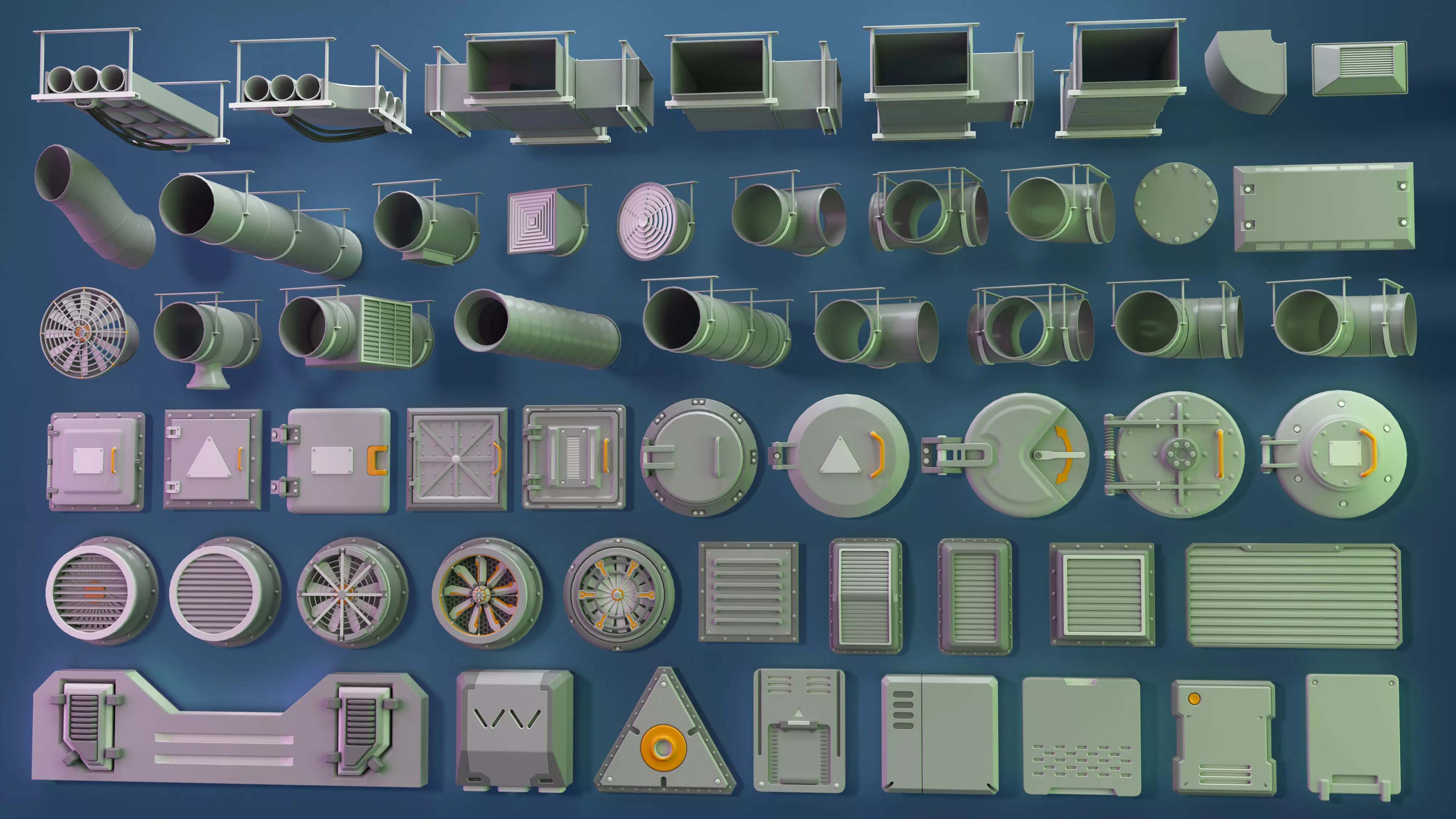55 middle/low poly industrial kitbashes