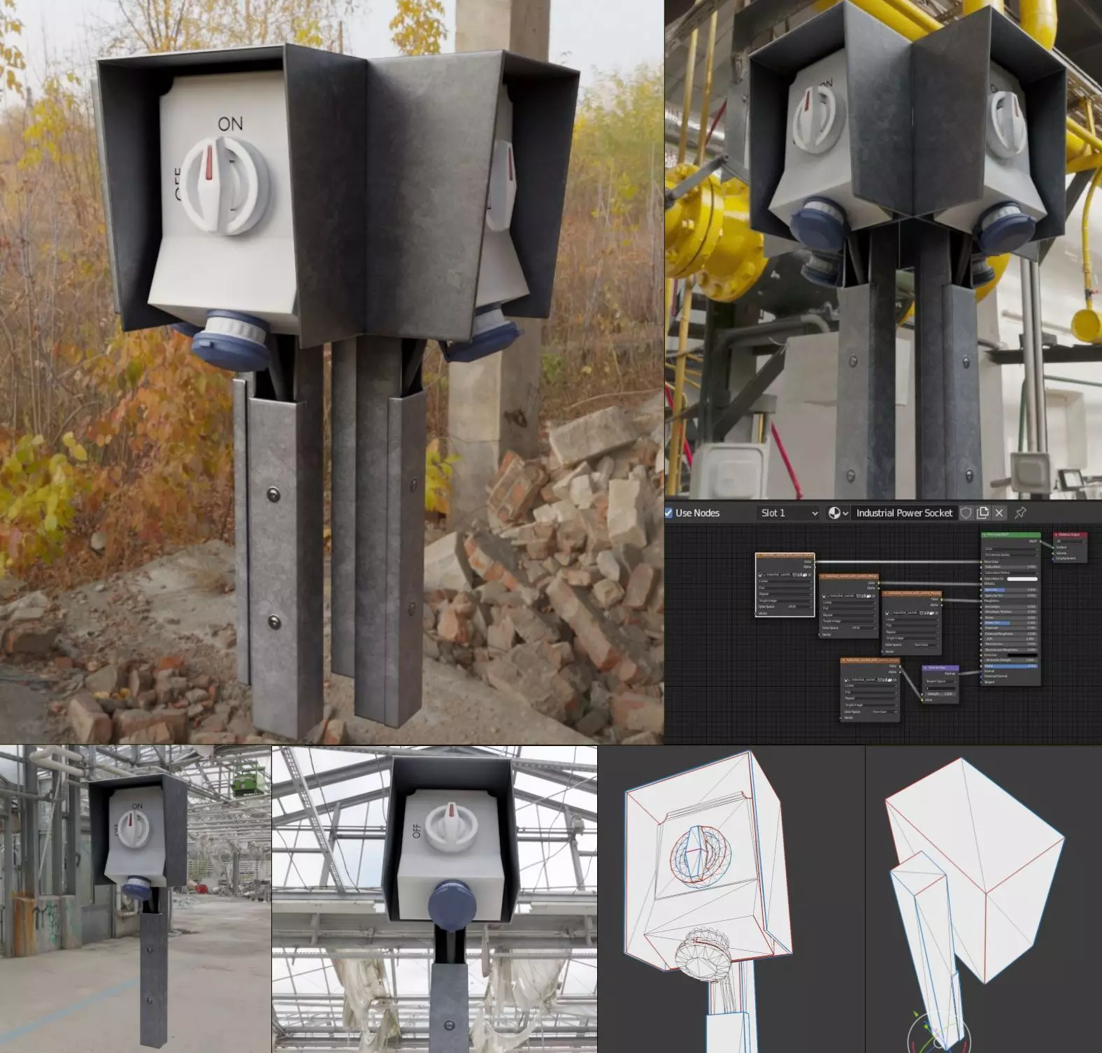 Industrial Socket with Switch Remastered Low-poly 3D model