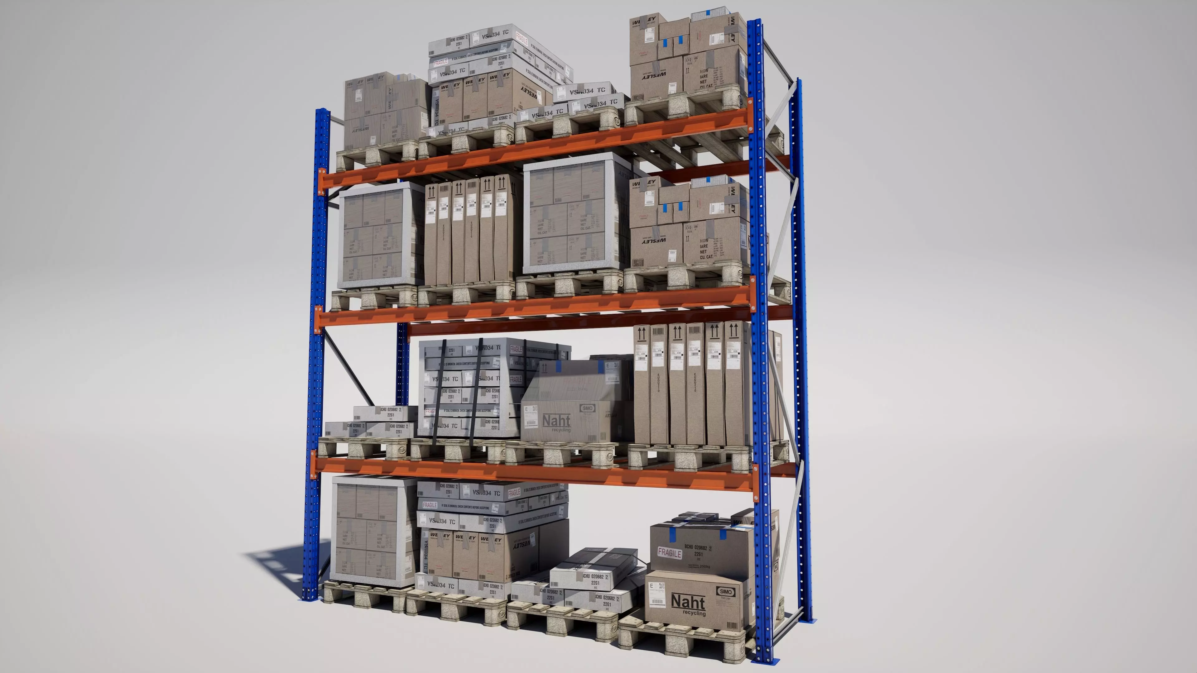 Detailed model of a industrial warehouse cardboard box pallet shelf
