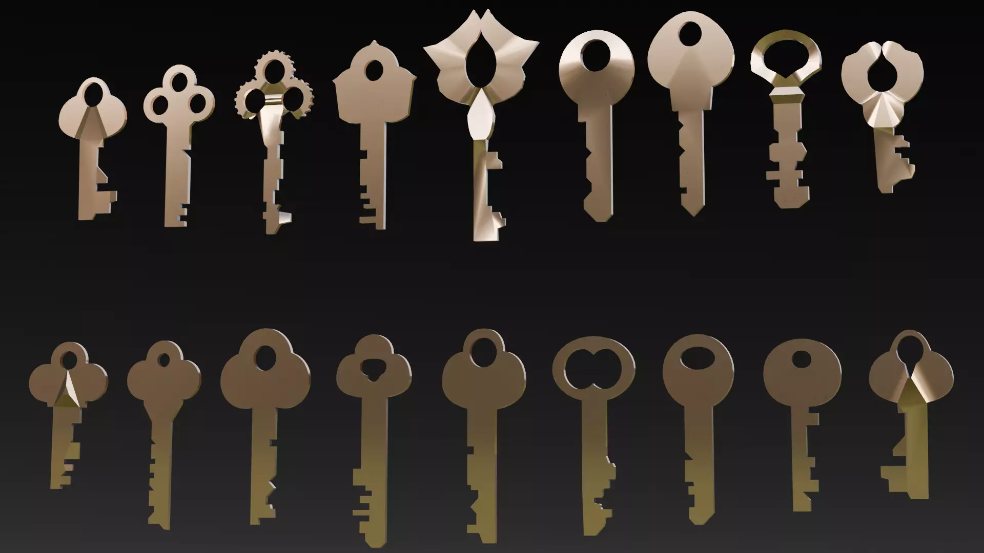 Media Type:Digital Asset: The Keys Pack is offered as a digital 3D model, making it easily adaptable for integration into various digital platforms and environments.Geometry:Composition: The geometry of the model is a sophisticated combination of quads and triangles. This mixture ensures a detailed and efficient structure that balances visual fidelity with rendering performance.Polygons: The model features a total of 9,282 polygons, providing a high level of detail that captures the intricacies of each key's design and structure.Vertices: There are 7,248 vertices in the model, supporting the detailed shapes and features of the wooden keys and contributing to their realistic appearance.Textures and Materials:Textures: High-resolution textures are applied to enhance the visual detail and realism of the wooden keys. These textures simulate the natural wood grain, wear, and aging effects, adding depth and authenticity to the model.Materials: A variety of materials have been utilized to define the surface properties of the keys. This includes different wood finishes and potential decorative elements, ensuring each key has a distinct and realistic appearance.Rigging and Animation:Rigged: The model is not rigged, indicating it lacks an internal skeleton for movement or posing. It is designed as a static asset, suitable for visual representation rather than dynamic interaction.Animated: No pre-defined animations are included with this model. The keys are intended to be static objects, ideal for scenarios where animation is not required.UV Mapping:UV Mapped: UV mapping techniques have been employed to ensure accurate application of textures to the model's geometry. This process enhances the model’s appearance by precisely aligning the textures with the 3D surfaces of the keys.Uses:The Wooden Keys Pack 3D model is highly versatile and can be employed in a range of professional applications, including: