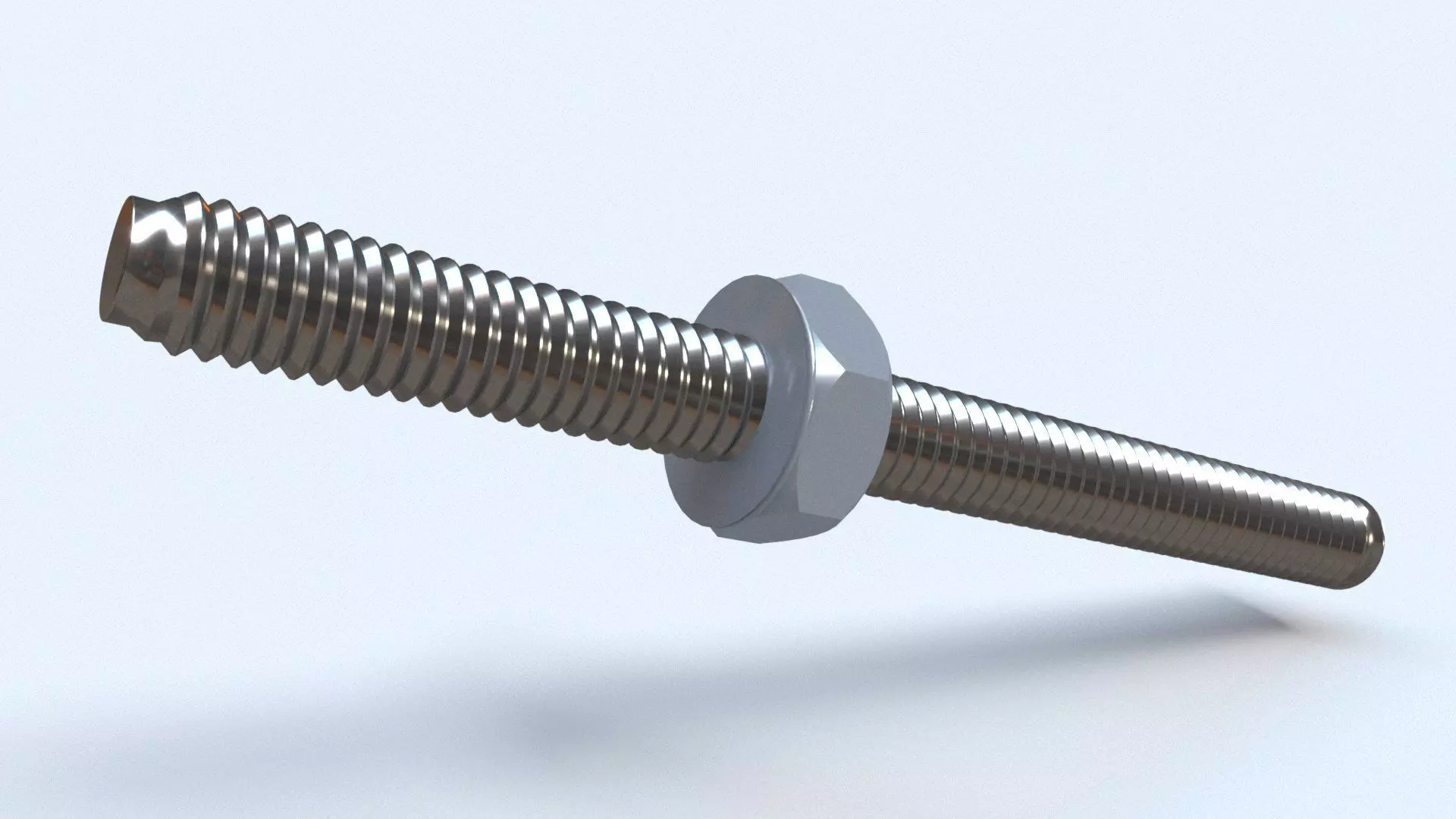 The nut and washer can be freely moved up and down the bolt. Both elements are parented to the bolt itself, meaning any articulation of the bolt will be mimicked of the nut and washer.