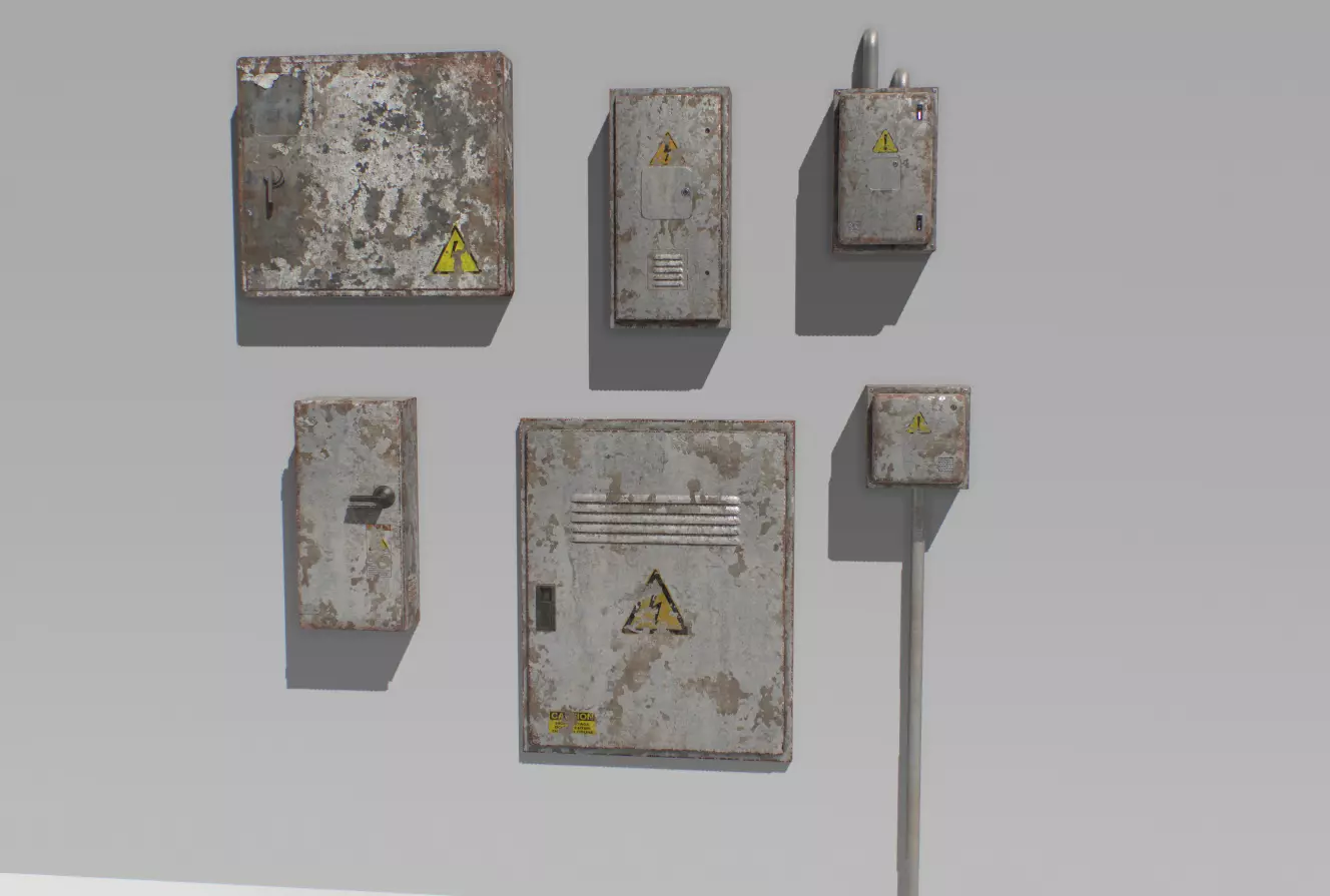 Old and Rusty Electrical Box Pack 1 Low-poly 3D model