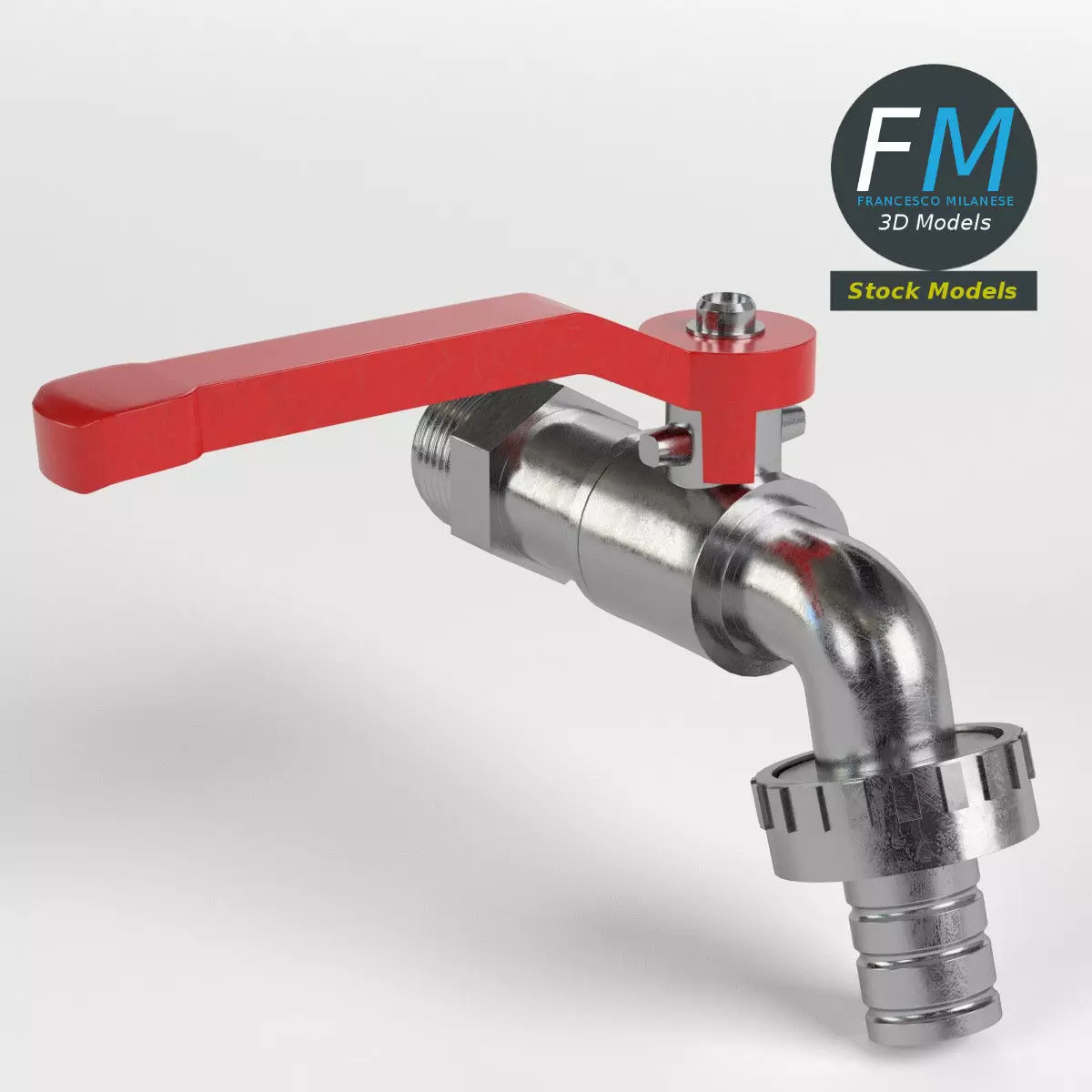 Outdoor faucet 3D Model. 2 individual objects (faucet, lever; so you can rotate or even animate it), sharing the same non overlapping UV Layout map, Material and PBR Textures set. Production-ready 3D Model, with PBR materials, textures, non overlapping UV Layout map provided in the package.