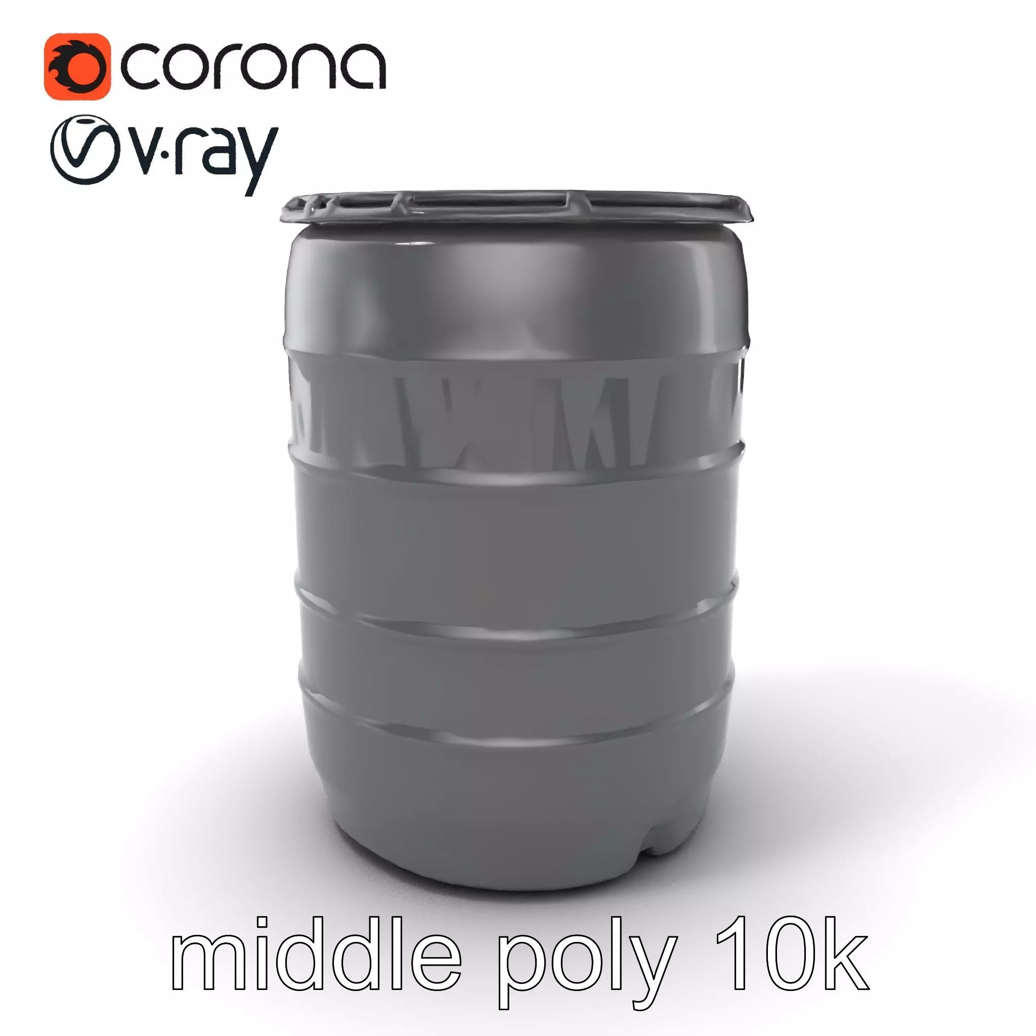 This 3D model of a plastic drum features a modular base with a 100-liter capacity, intuitive bind-lock system, and inset guarantee markings. Its carbon black finish and peeking-side reinforcement bands make it ideal for industrial design visualizations, product showcases, and simulations.