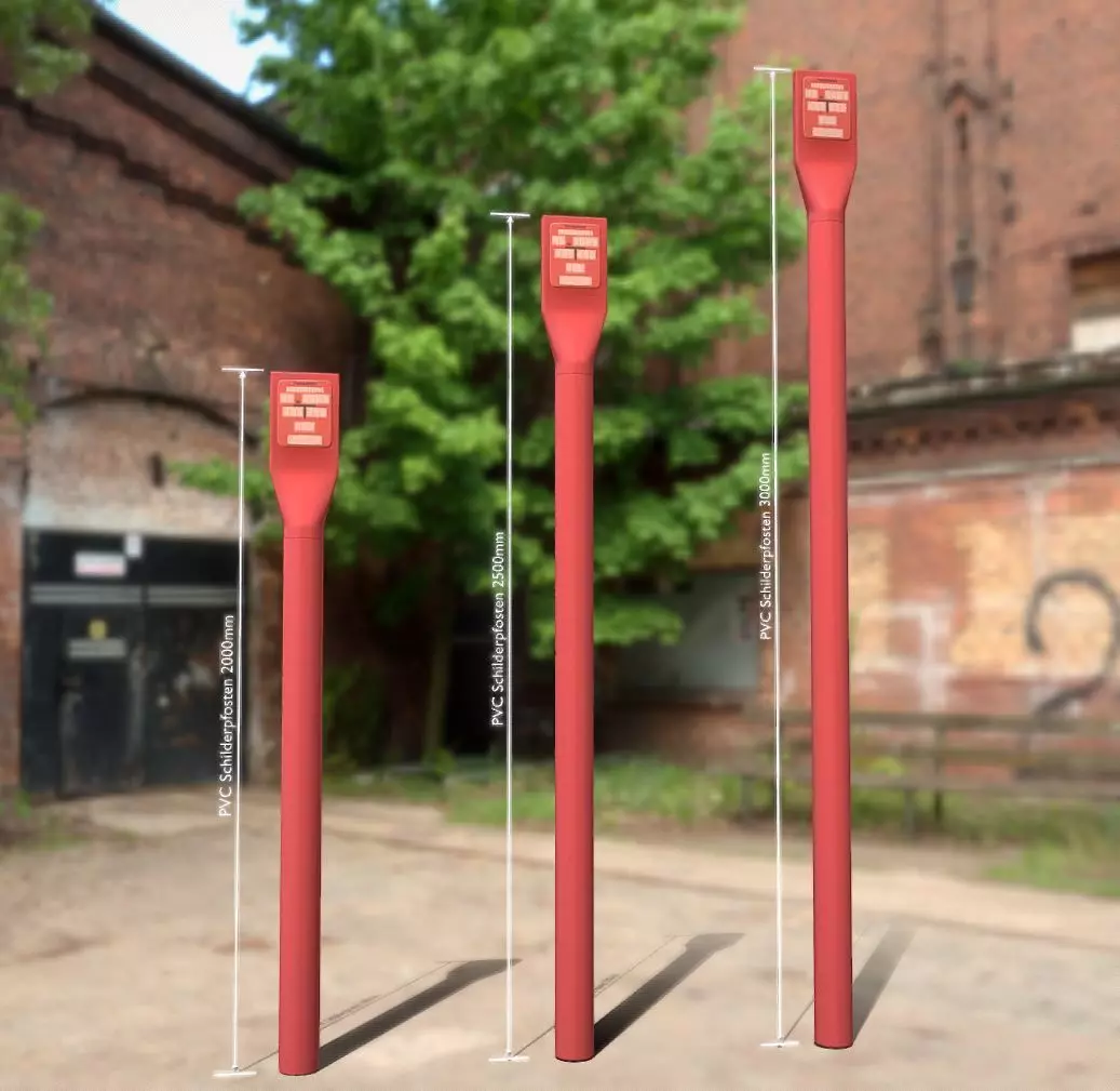 PVC Schilderpfosten mit Hinweisschild Fernwärme.