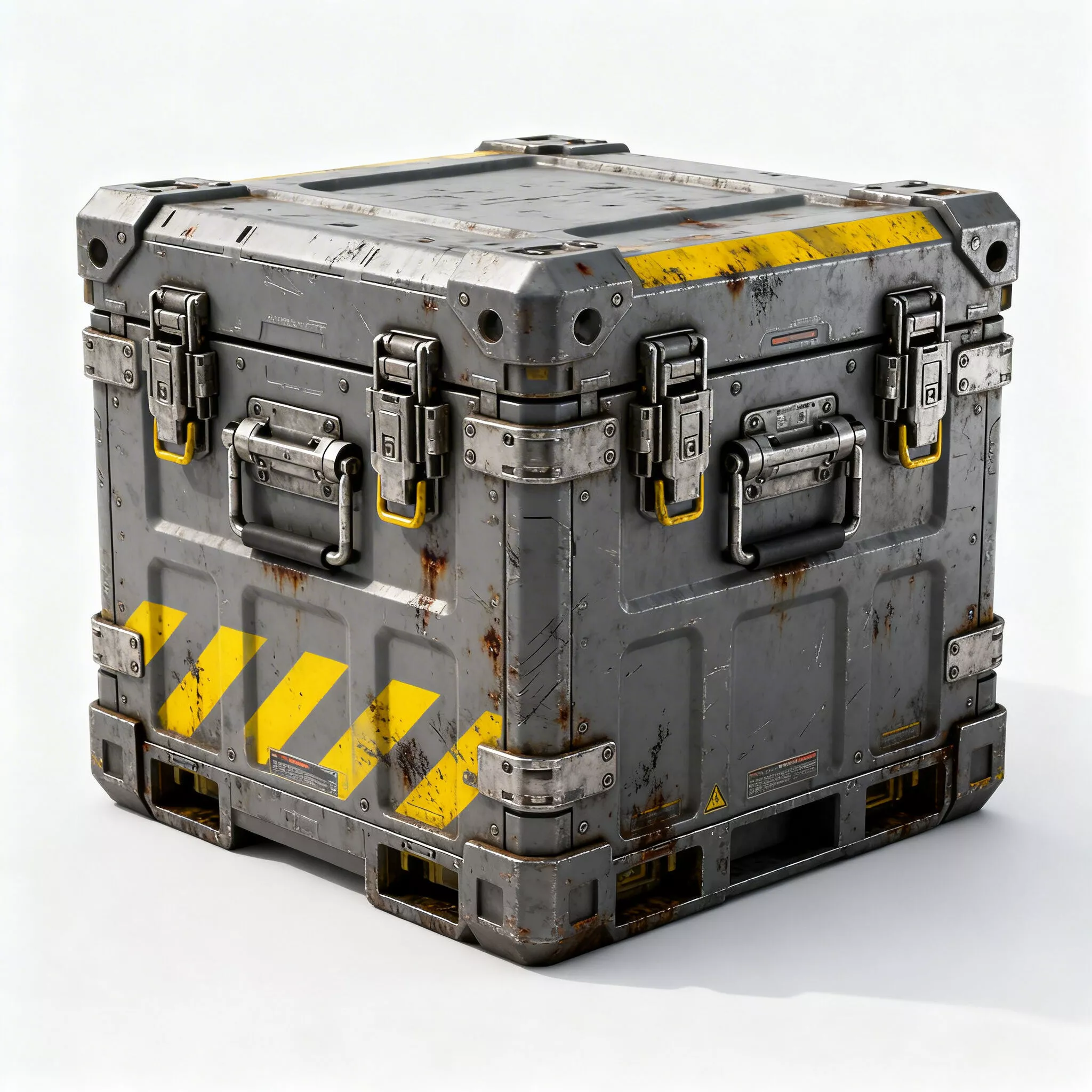 Tagscrate scifi modular storage cargo container industrial weathered metal futuristic box military prop cyberpunk rusted realistic tactical asset heavy iron