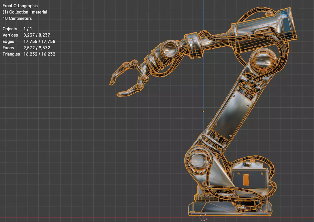 The model has material settings that define how surfaces look (color, shine, transparency, etc.).