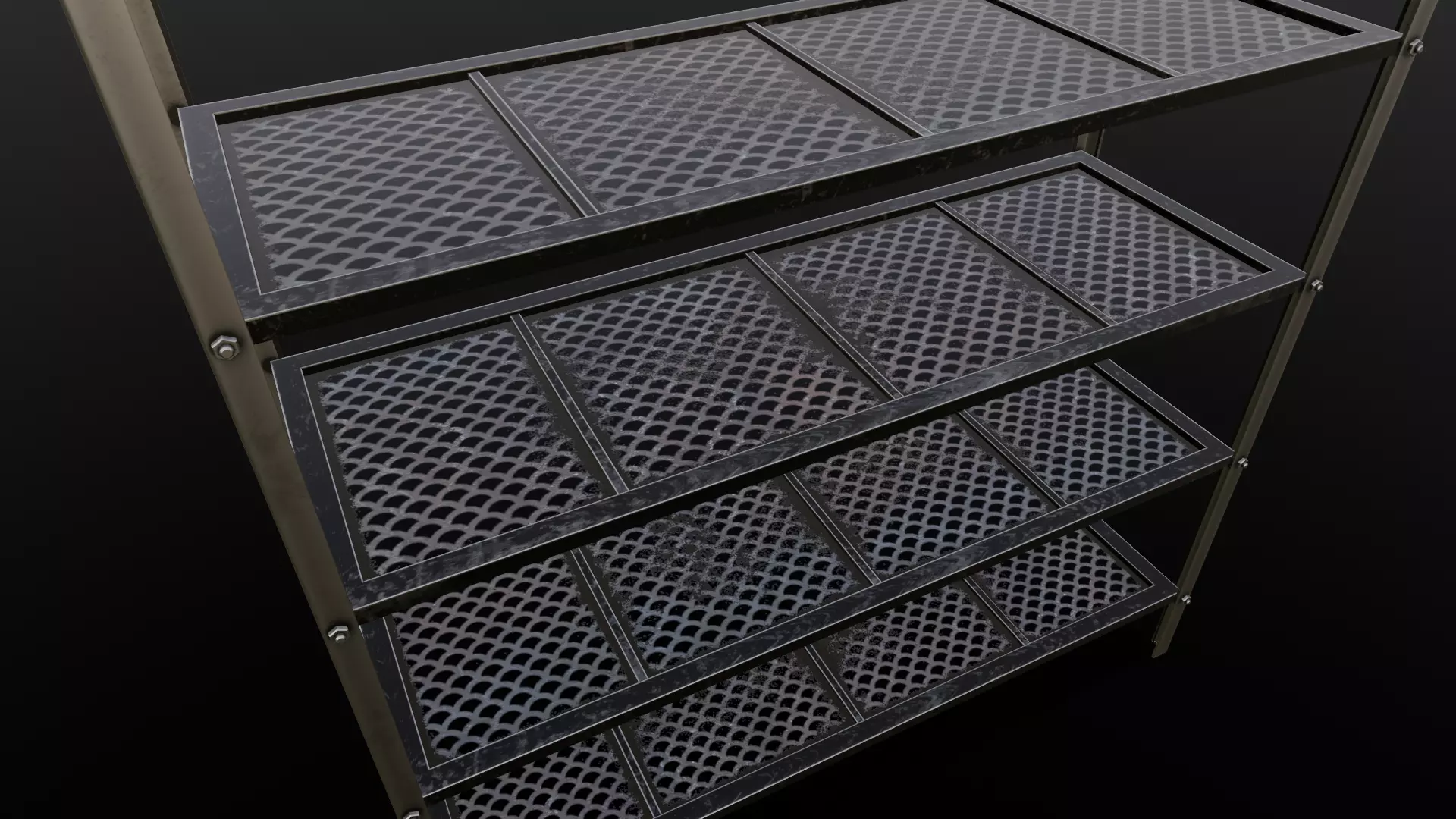 Textures: High-resolution textures have been expertly applied to this model, providing a realistic and detailed visual representation. These textures simulate the look and feel of various materials, such as wood, metal, or plastic, which are commonly used in shelf construction.Materials: A variety of materials have been employed to define the surface properties of the shelf, including its color, reflectivity, and roughness. This careful material application ensures that the model accurately represents a real-world shelf.Rigging and Animation: