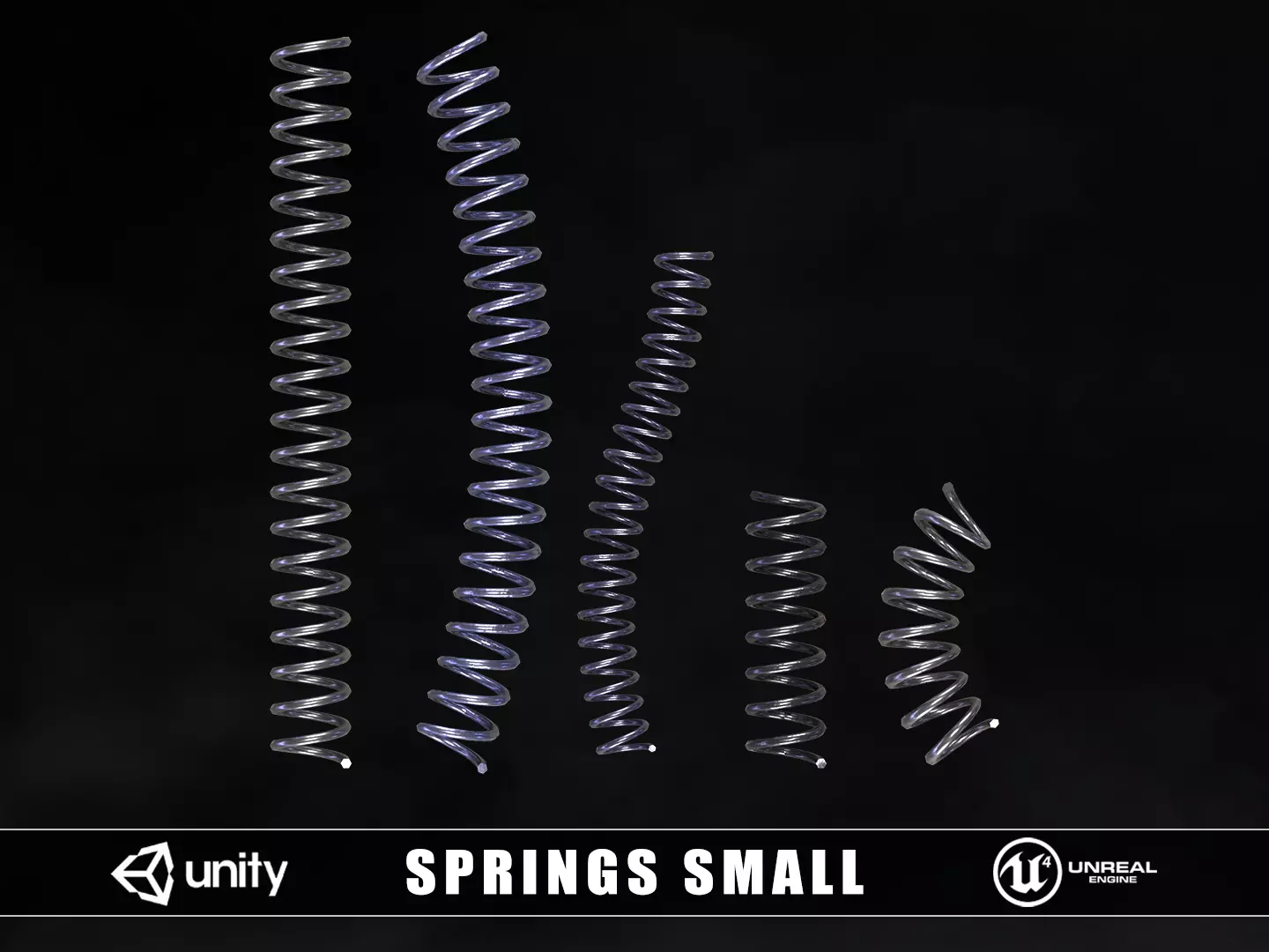 Springs Small 3D model. This model comes with the springs and 1 texture set. Modeled in Maya and textured with Substance Painter and Photoshop. The model is built to scale and is UV unwrapped with 2k textures. Includes 3D model and textures!
