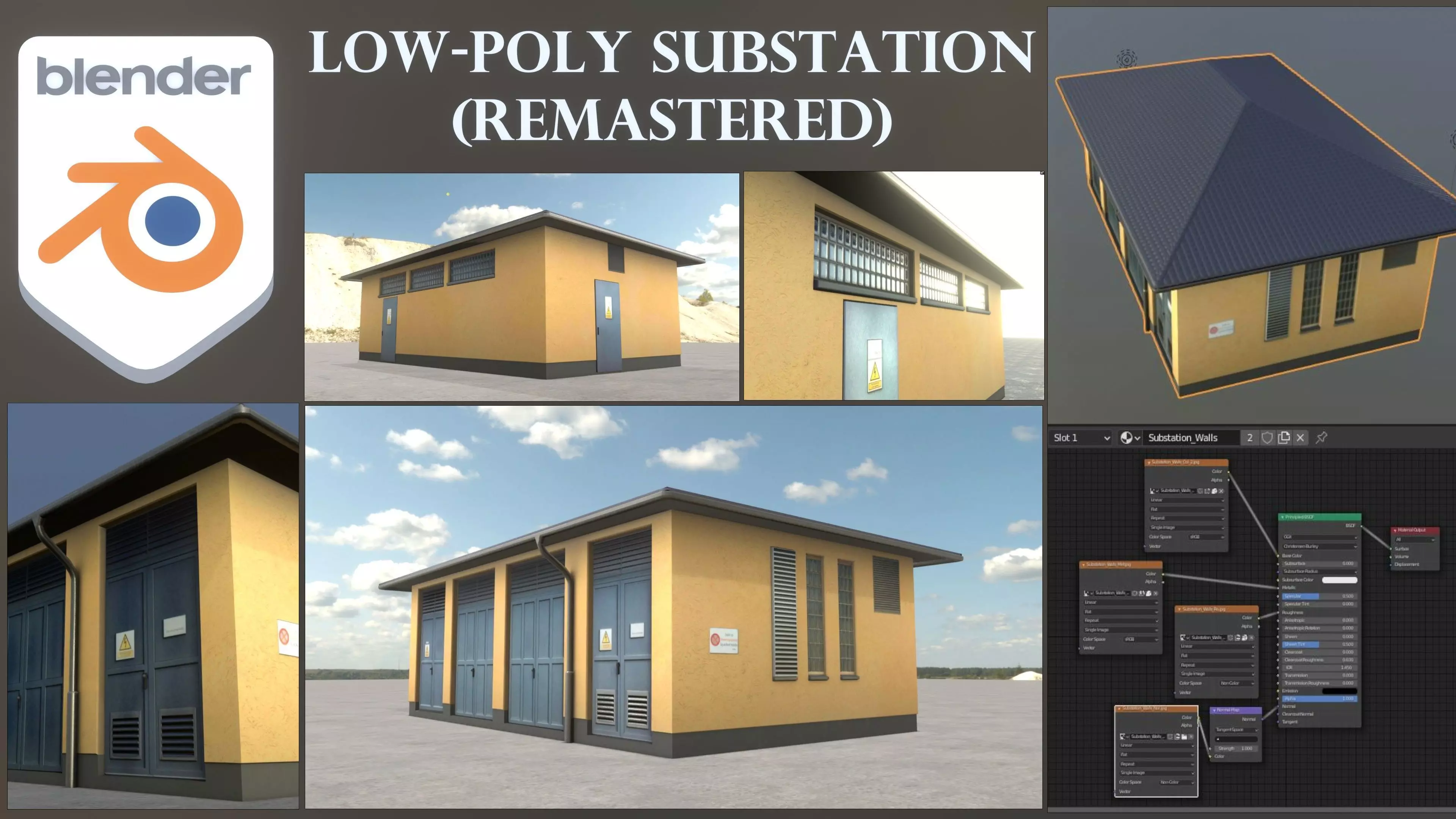 Here is the remastered version of the substation with new pbr-textureset and setup for a use in Blender-3.2