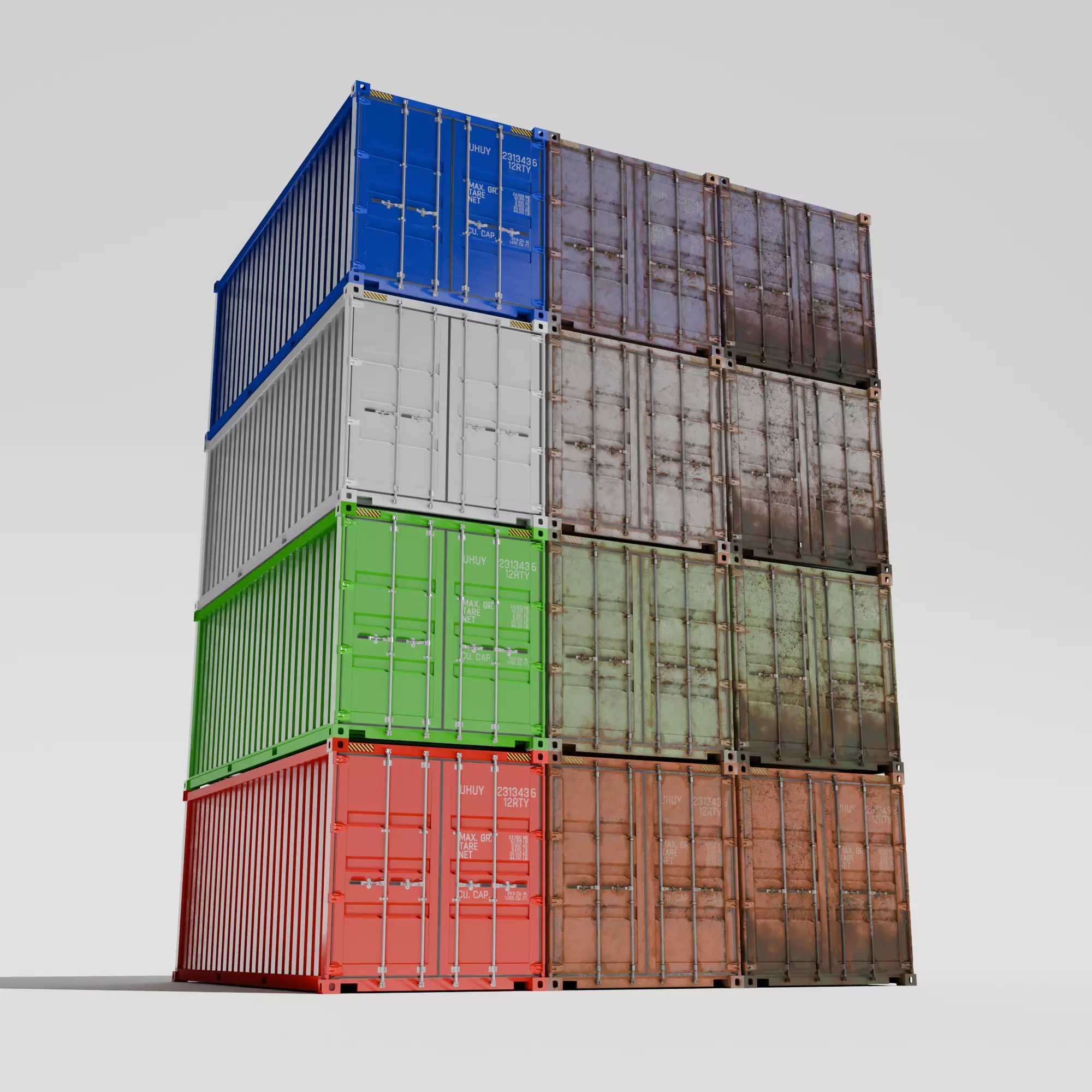 High quality shipping container standard 20 feet model made original with Blender 4.0.There is animation on the door but it can only be operated with BlenderIt has 4 colors red, green, white and blueHas 3 texture variants: clean, rusty, and dirtyTexture size is 4096x4096. Real-world scale. Maps- Base Color, Roughness, metallic, and normal map.