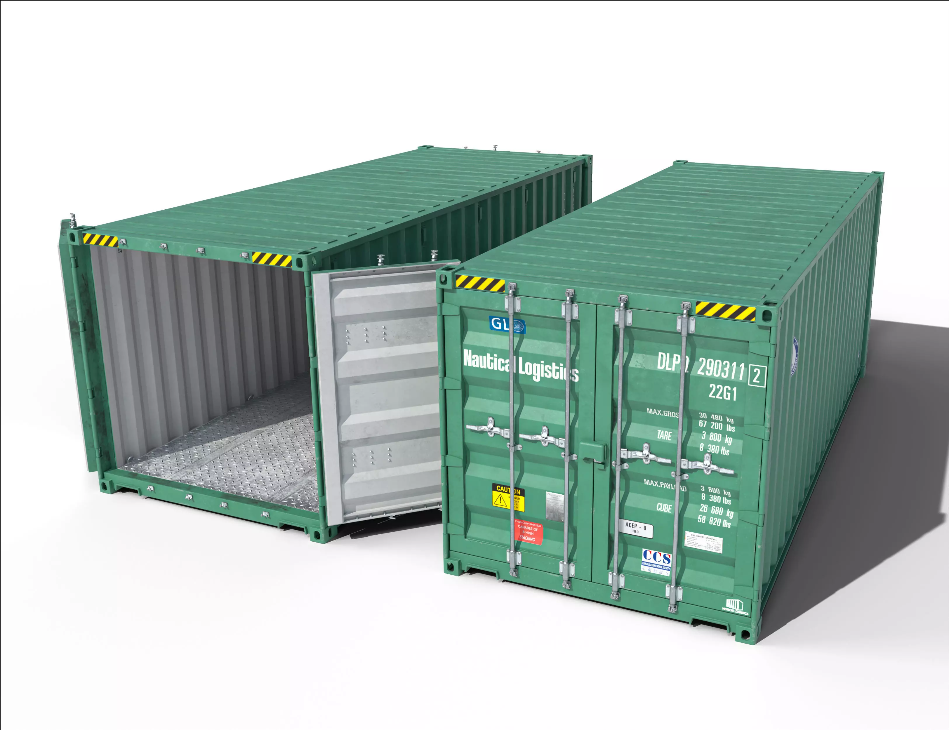 LP 20 ft Shipping Cargo Container with 4 individual drivers to move doors individualy. Made for use in Video Games but you can use it for basically anything.