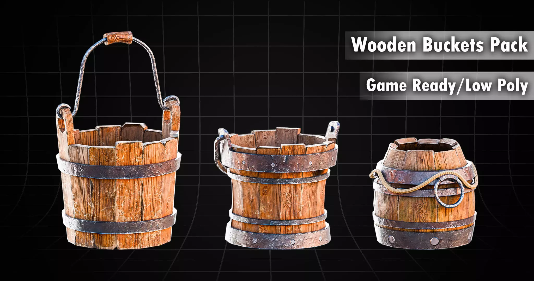 Whether you are building a stylized game world or enhancing a scene with detailed props, these wooden buckets provide a flexible and production-ready solution.