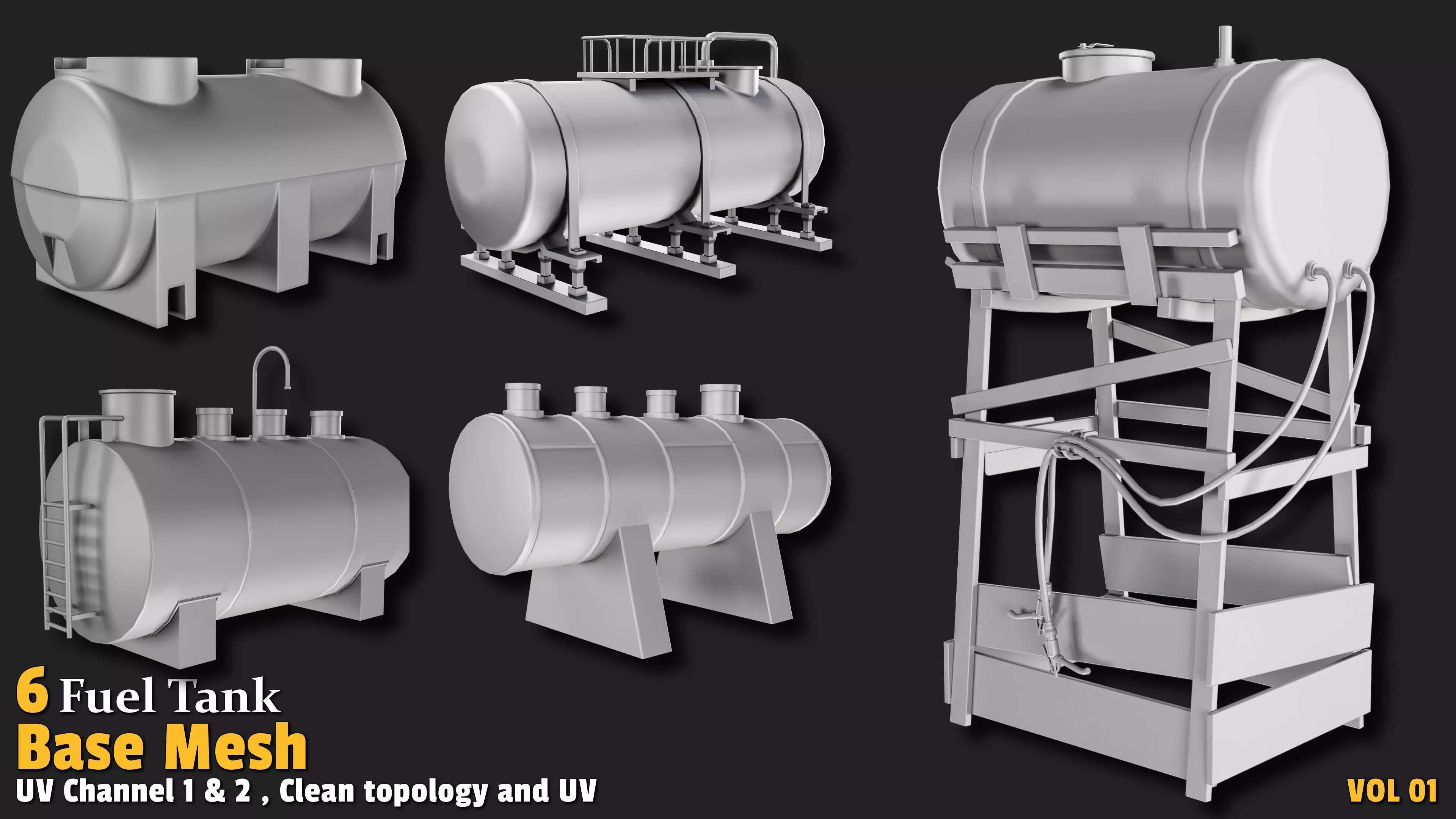 Elevate your industrial, sci-fi, post-apocalyptic, or military scenes with this powerful pack of 6 detailed Fuel Tank base meshes! Ideal for game developers, environment artists, and 3D creators who need realistic, high-performance fuel storage tanks without building from scratch.