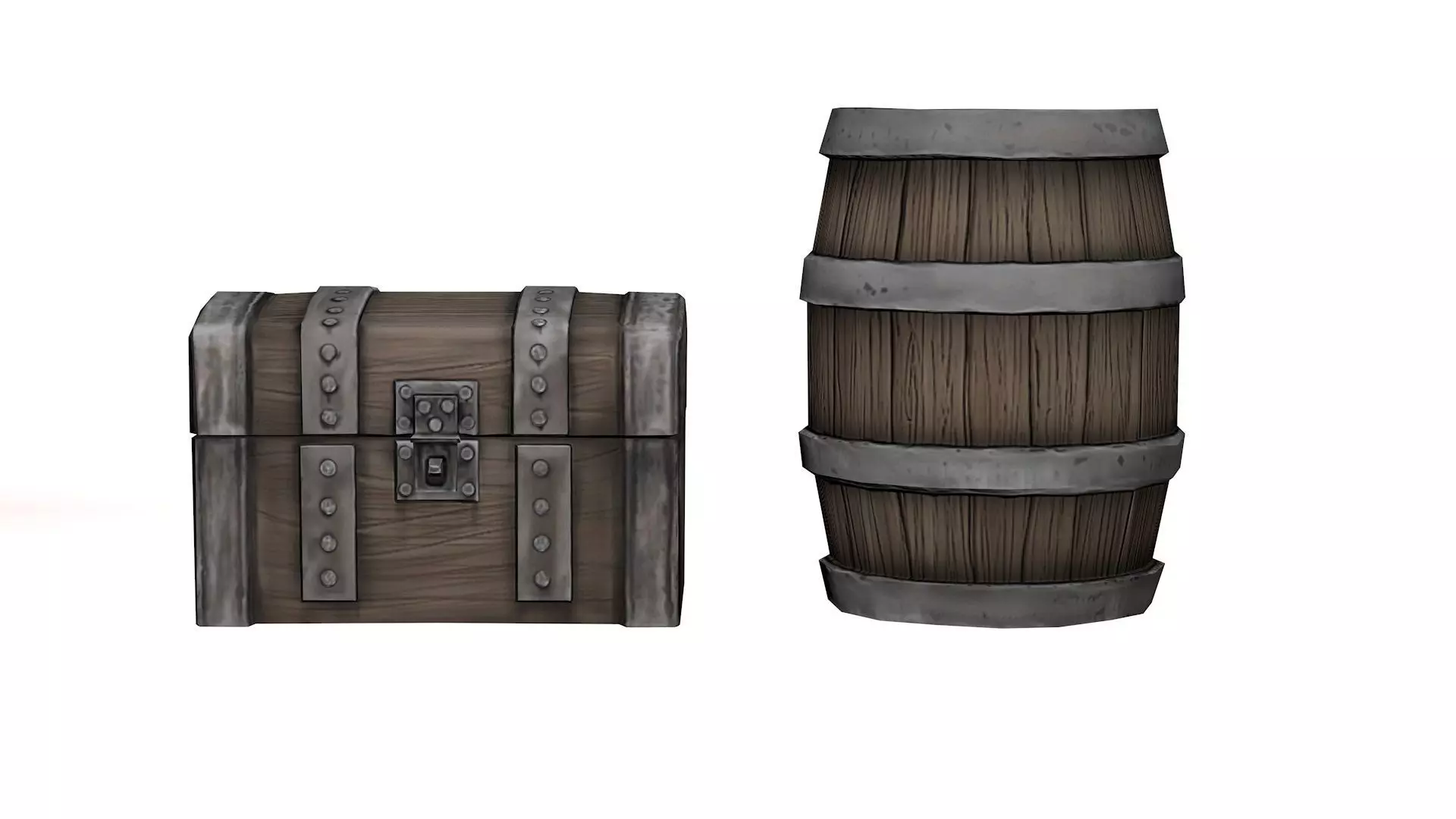 Barrel And Chest 3D Model Low-poly 3D model
