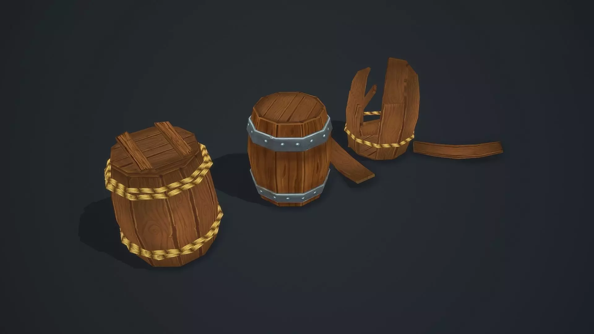 Stylization hand painted Wooden Barrels .Texture only diffuse resolution 1024x1024.Suitable for mobile games and stylized cartoon video.
