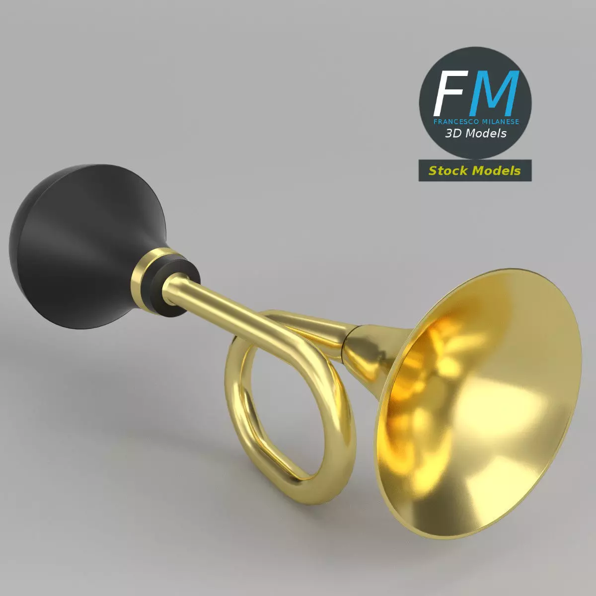 Brass vehicle horn 3D Model. Production-ready 3D Model, with PBR materials, textures, non overlapping UV Layout map provided in the package.