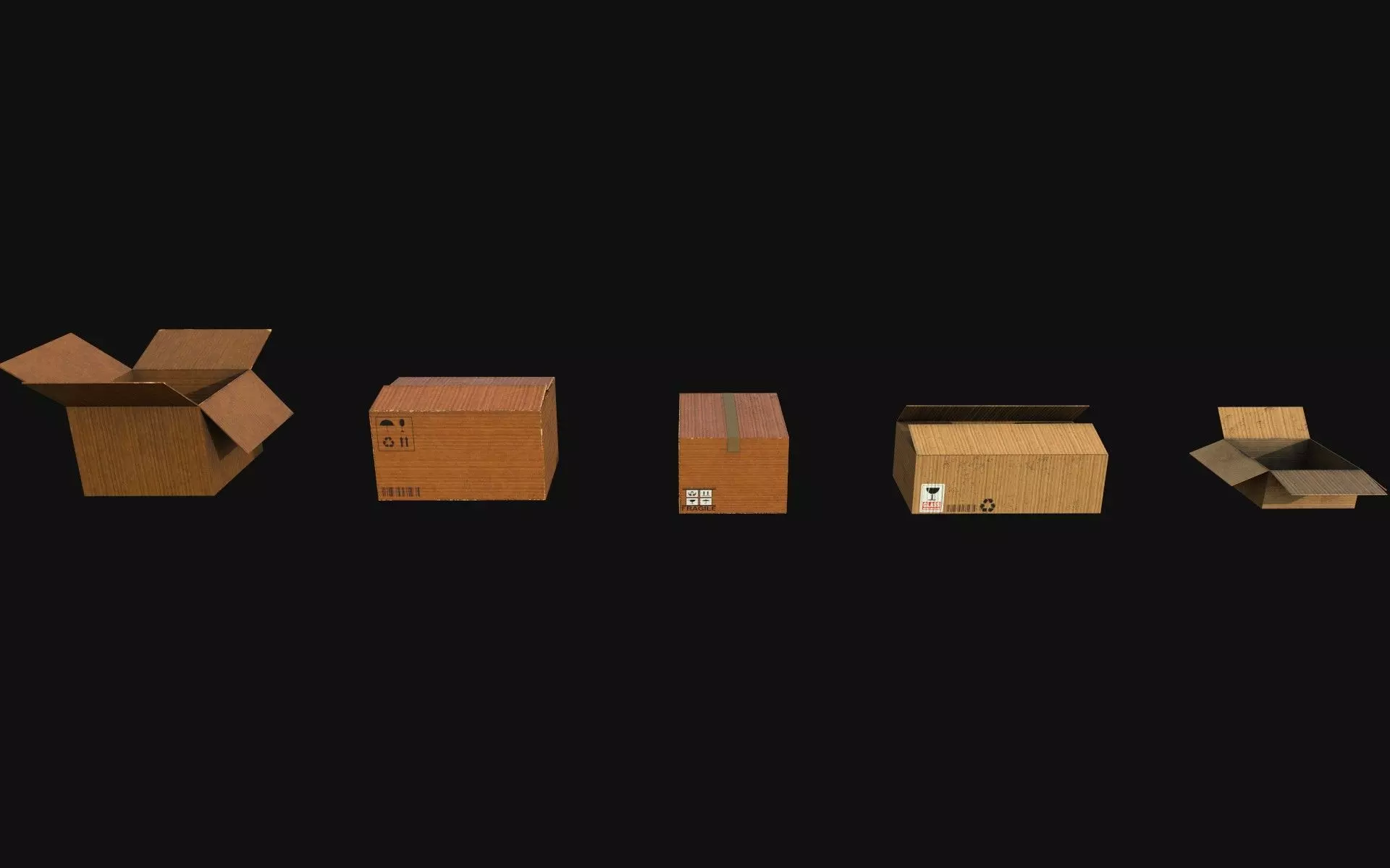 3D Low-poly Cardboard Boxes modeled in Maya and textured in Substance Painter, ready for games.