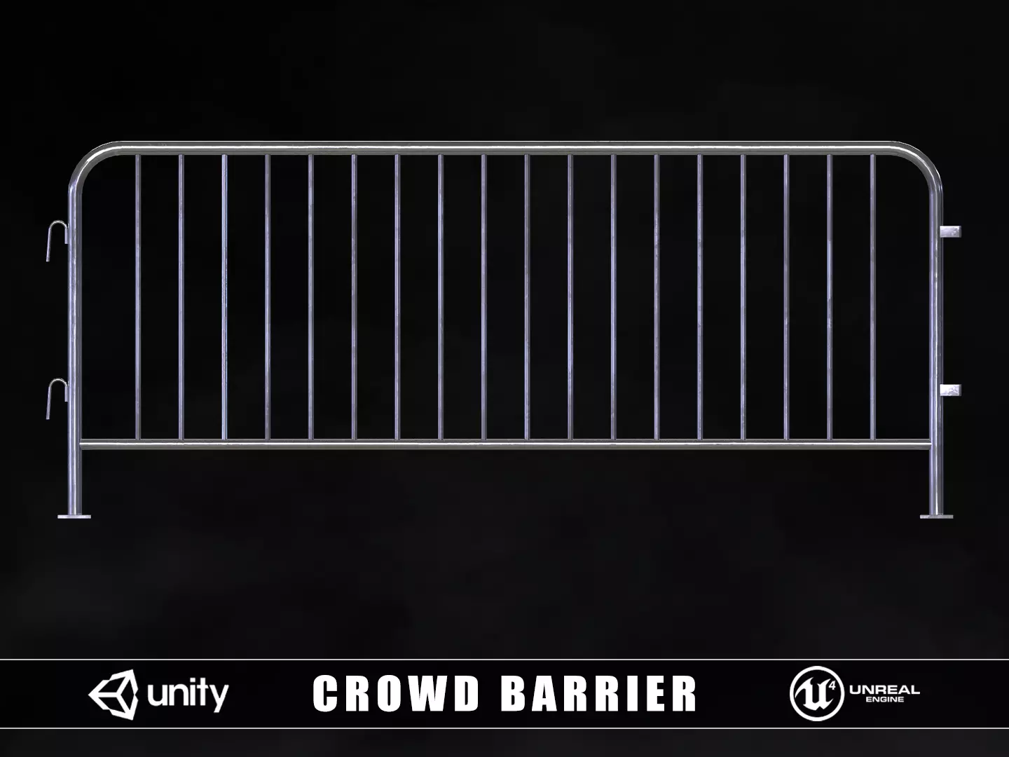 Crowd Barrier 3D model. This model comes with a crowd barrier model and 5 different texture sets. Modeled in Maya and textured with Substance Painter and Photoshop. The model is built to scale and is UV unwrapped with 2k textures. Includes 3D model and textures!
