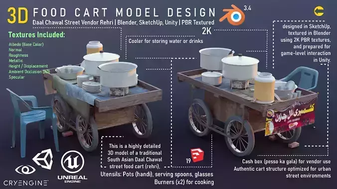 Uses Physically Based Rendering materials, which give the model realistic lighting and surface properties.