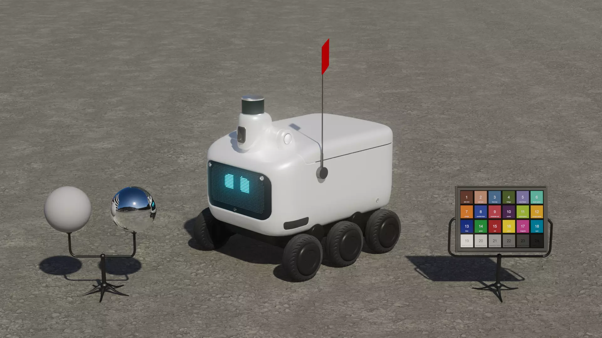 This 3D model of six-wheeled delivery rover bot, meticulously designed for efficient and autonomous last-mile delivery.