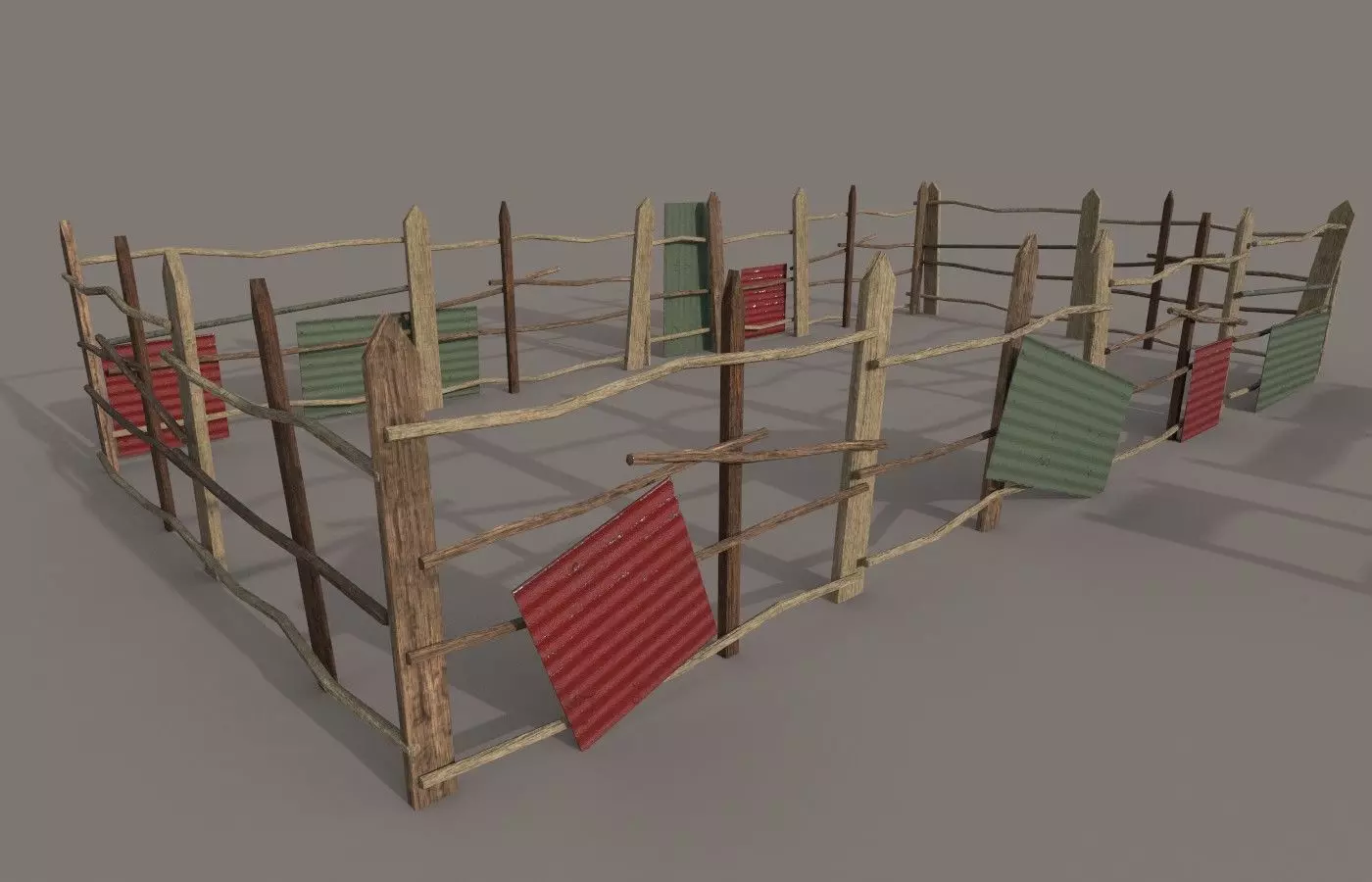 different Wooden fence PBR Low-poly 3D model