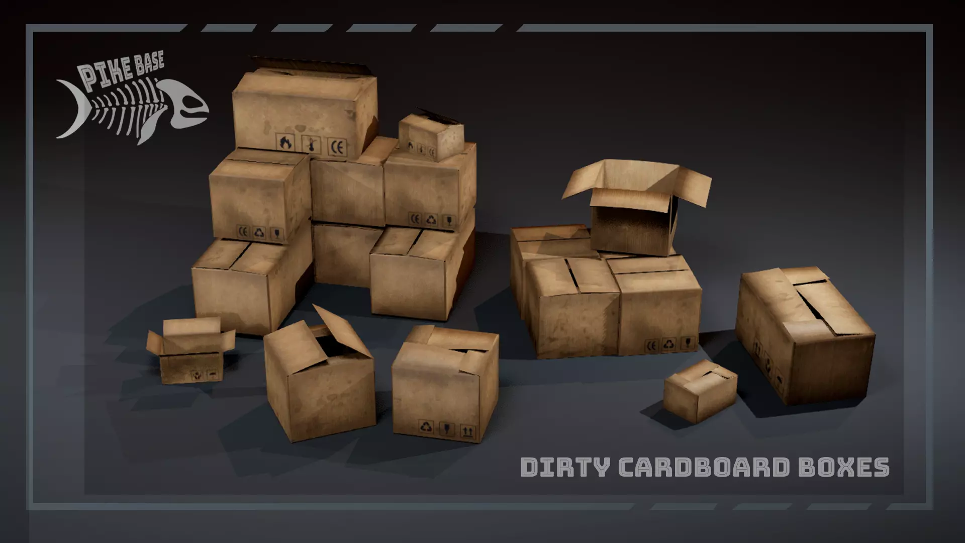 Dirty Cardboard Boxes Set includes five types game-ready cardboard boxes, in three different sizes. These props are perfect for industrial environments, warehouses, loading areas, construction sites, post-apocalyptic settings, or any scene that needs realistic clutter. Use these boxes to quickly populate industrial scenes with believable and detailed environmental props.