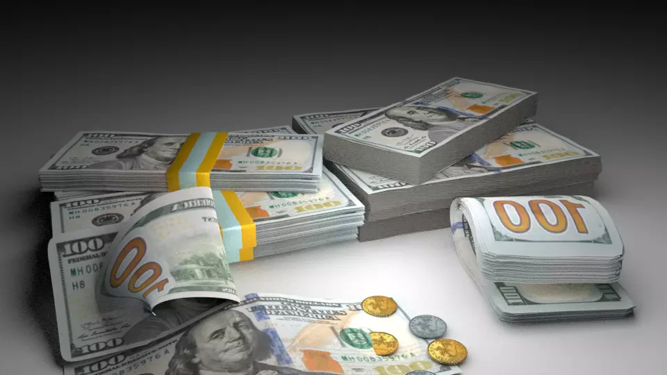 Dollar bills stack and coins 3d model Low-poly 3D model