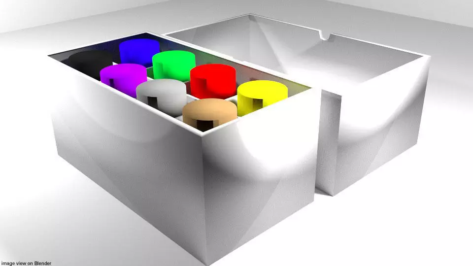 The model has material settings that define how surfaces look (color, shine, transparency, etc.).