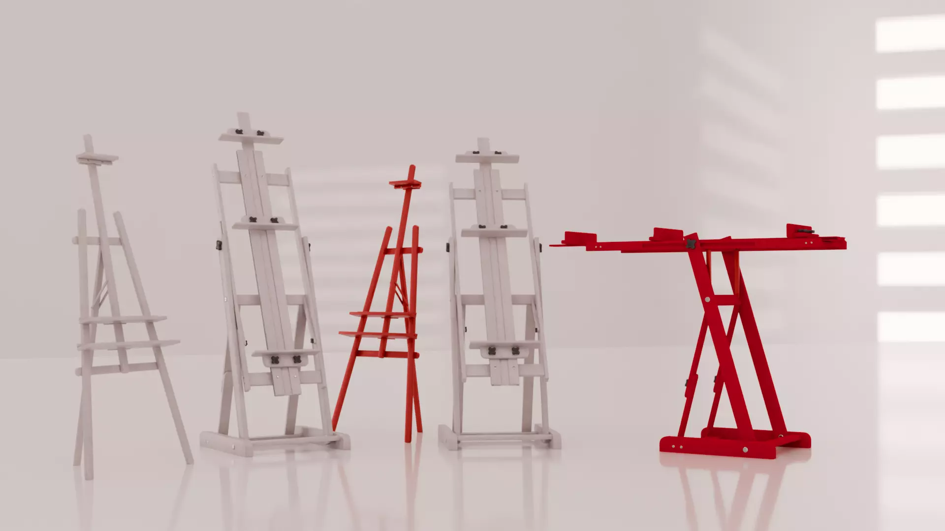 High-quality 3D models of realistic studio easels, including wooden and metal variants.This collection is perfect for use in interior visualizations, art studio renders, animations, and educational content.