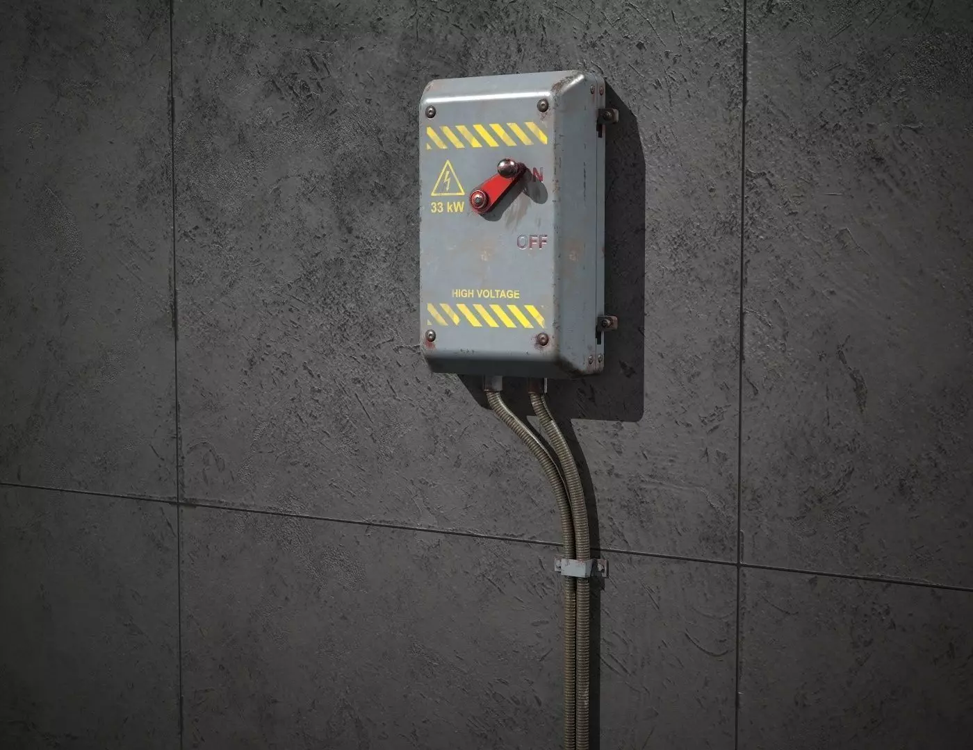 Electrical switch for games and realtime apps. Efficient low poly mesh that is ready to import to game engines. Real world scale. The tubes are intentionally a little a bit longer than in real world in order to aid placement in the scene as the tubes can simply go into floor.