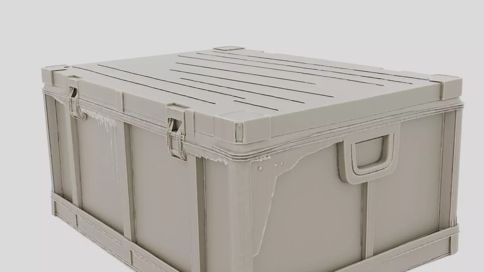 This 3D model depicts a heavy duty storage crate designed for transporting experimental scientific equipment. The crate features reinforced panels, locking bar shapes, and solid corner supports, all modeled as a single durable geometry. The design avoids logos, text, or markings and contains no textures. There is no rigging or animation. Thin edges are avoided to improve print success. The proportions are generic and suitable for secret lab scenes, military science environments, or mysterious research facilities. The smooth surfaces support easy sanding, priming, and painting. The model is static, untextured, and fully ready for 3D print.