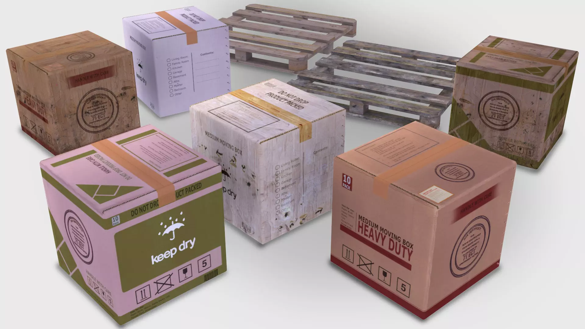 Game ready Cardboard boxes Low-poly Low-poly 3D model