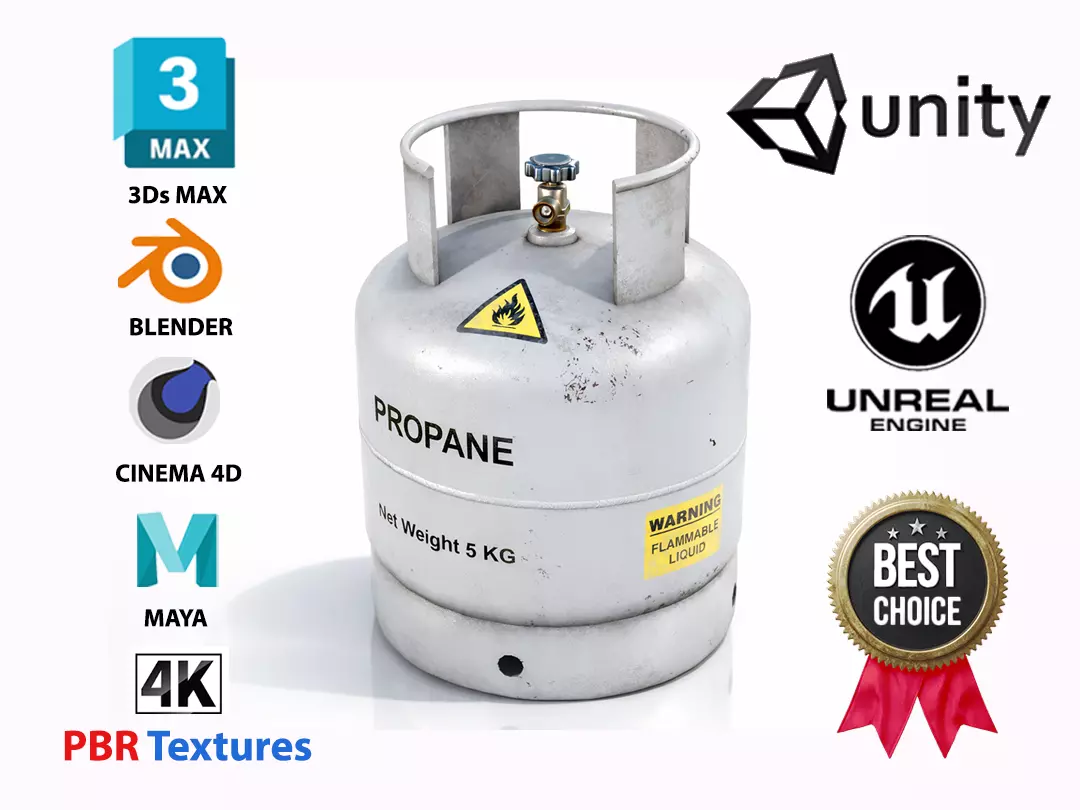 gas cylinder 5KG in 4-Colors PBR 4K game ready Low-poly 3D model