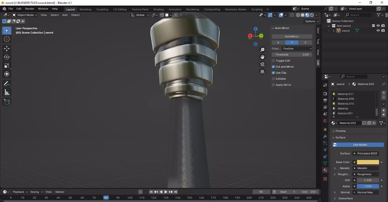 The 3D model of a longsword consists of a mesh of polygons that are organized in a 3D space to create the shape of the sword. The mesh consists of vertices, edges, and faces that are connected to form the blade, hilt, cross-guard, and pommel of the sword.The model is textured with a variety of materials to create a realistic appearance. The blade is typically textured with a metallic material to simulate the shiny appearance of steel.This is a perfect 3d realistic model of the geralt of rivia the witcher sword