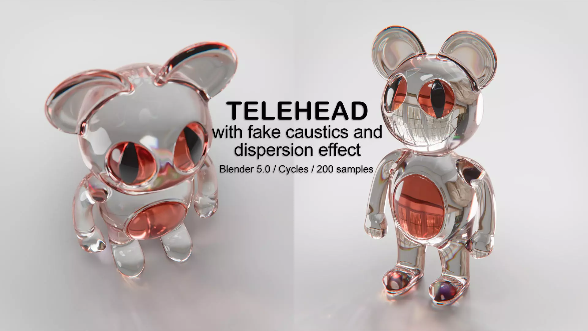 It is configured for Cycles, includes fake caustics and dispersion effects for more realistic renders.