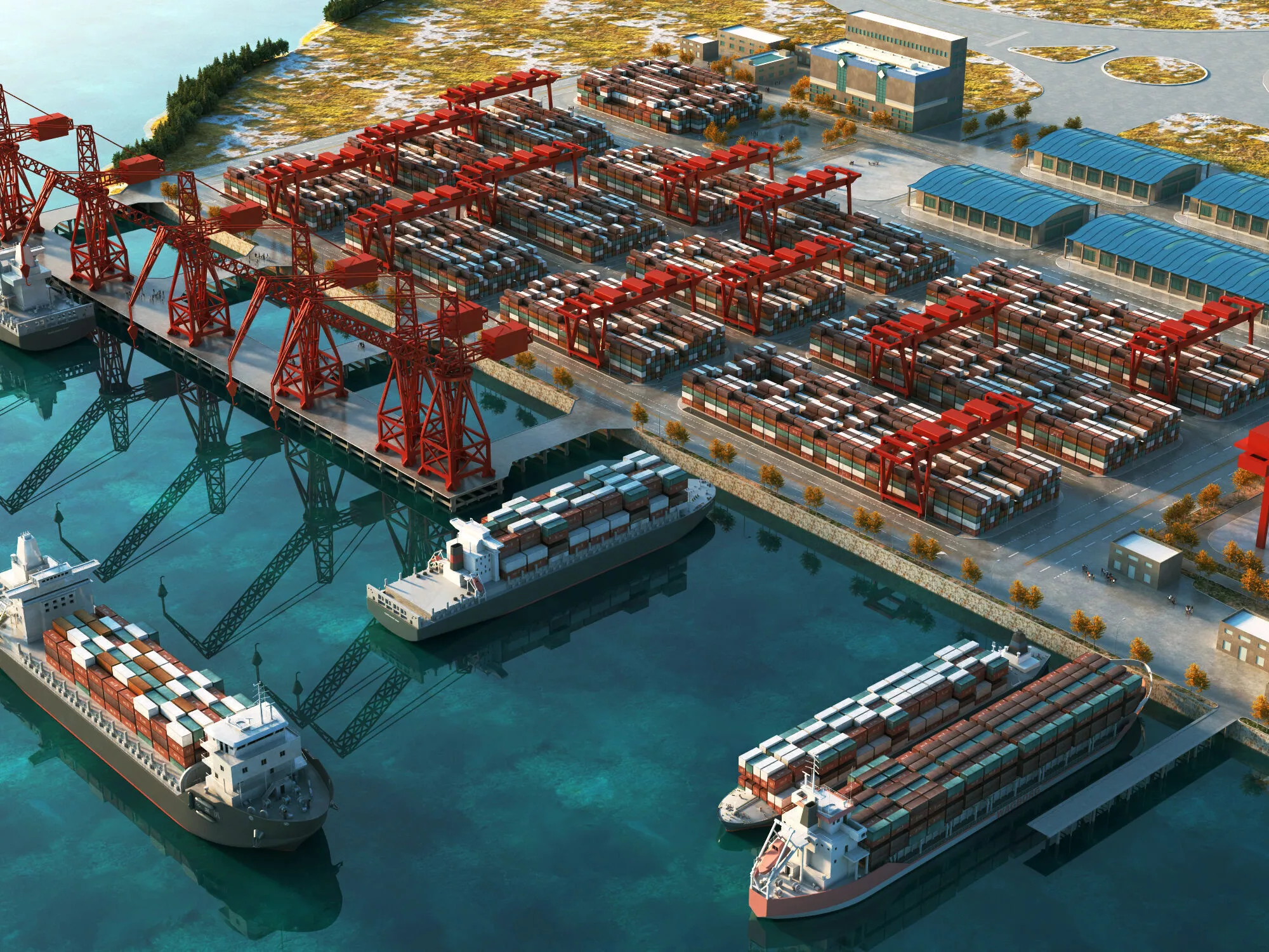 Legal: Generic industrial port design without any trademarked logos or specific corporate branding.
