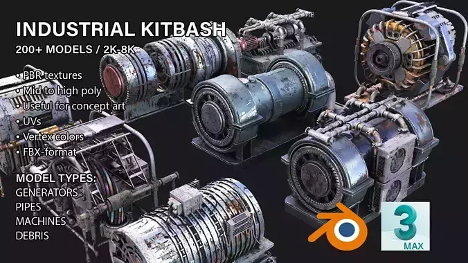 Includes 200+ mid to high poly models of various industrial devices.