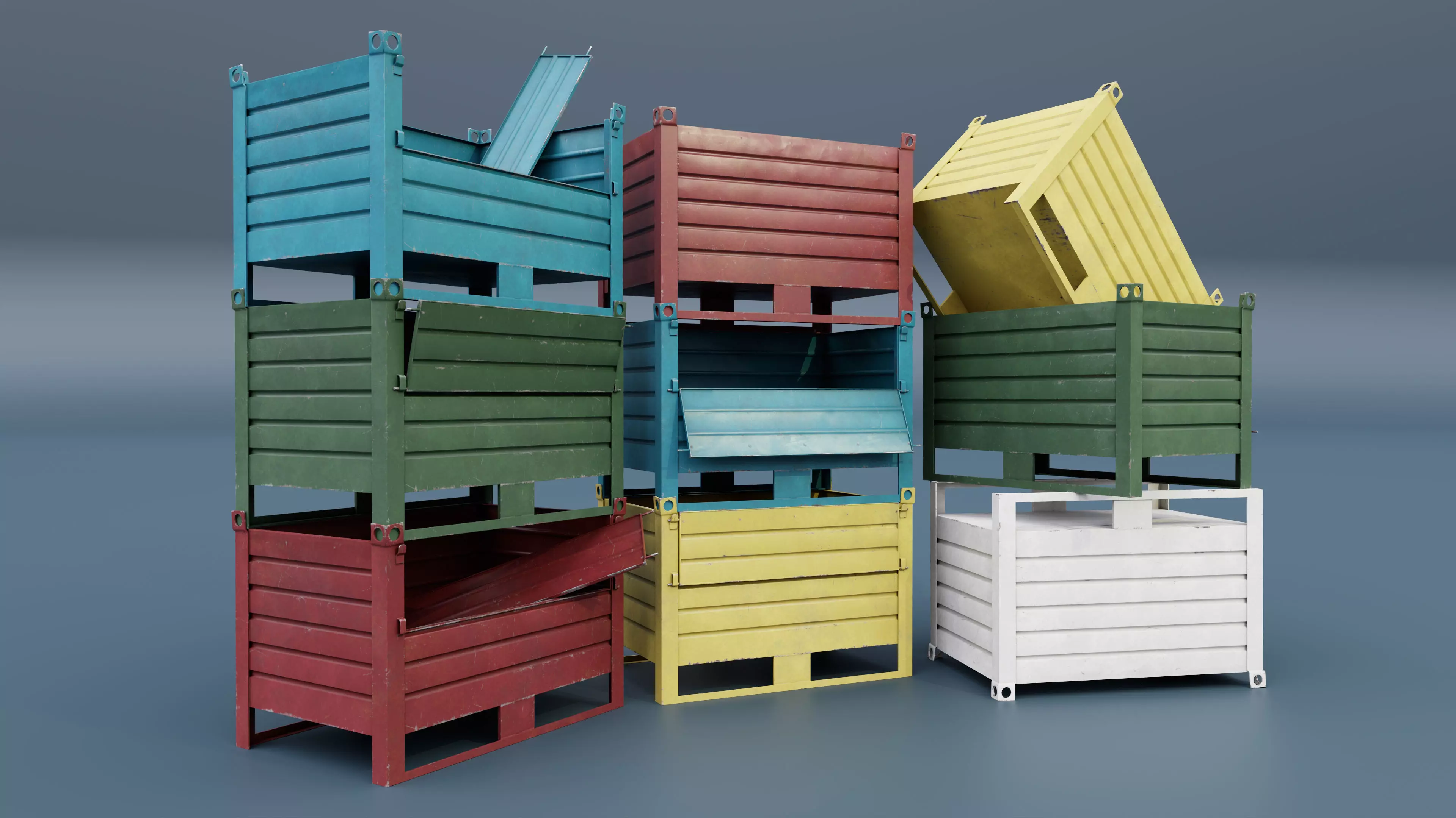 Industrial Metal Crate Used condition 5 Color Variations Low-poly 3D model