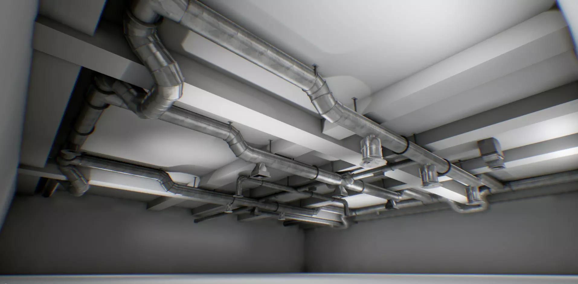 Interior air ducts modular system 38 elements 1 with animationAir ducts game ready PBR asset