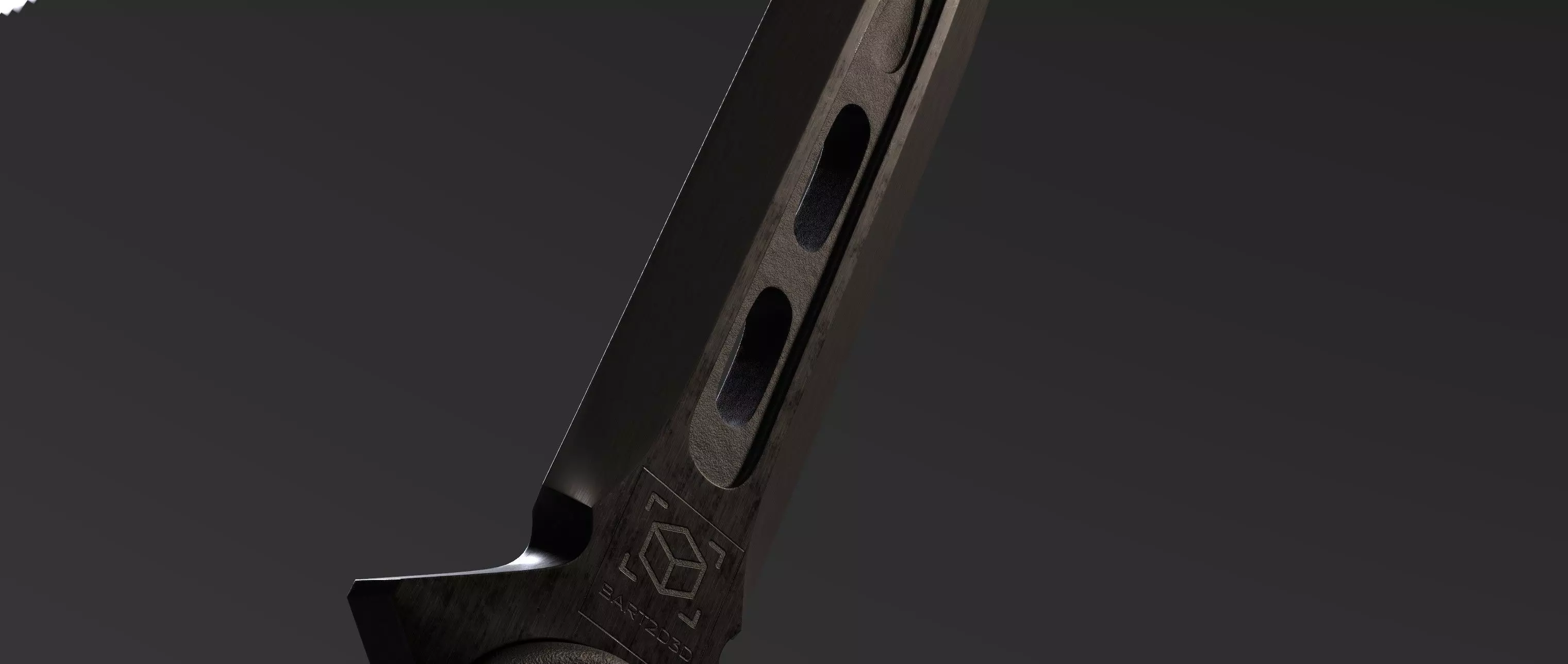 Here is a knife with a long grip. This is a high-poly model for a detailed rendering. The textures are high resolution for maximum detail. This knife was fully modeled in Blender and then textured in Adobe Substance Painter. This model is intended for use in a CGI scene and not for real-time use.