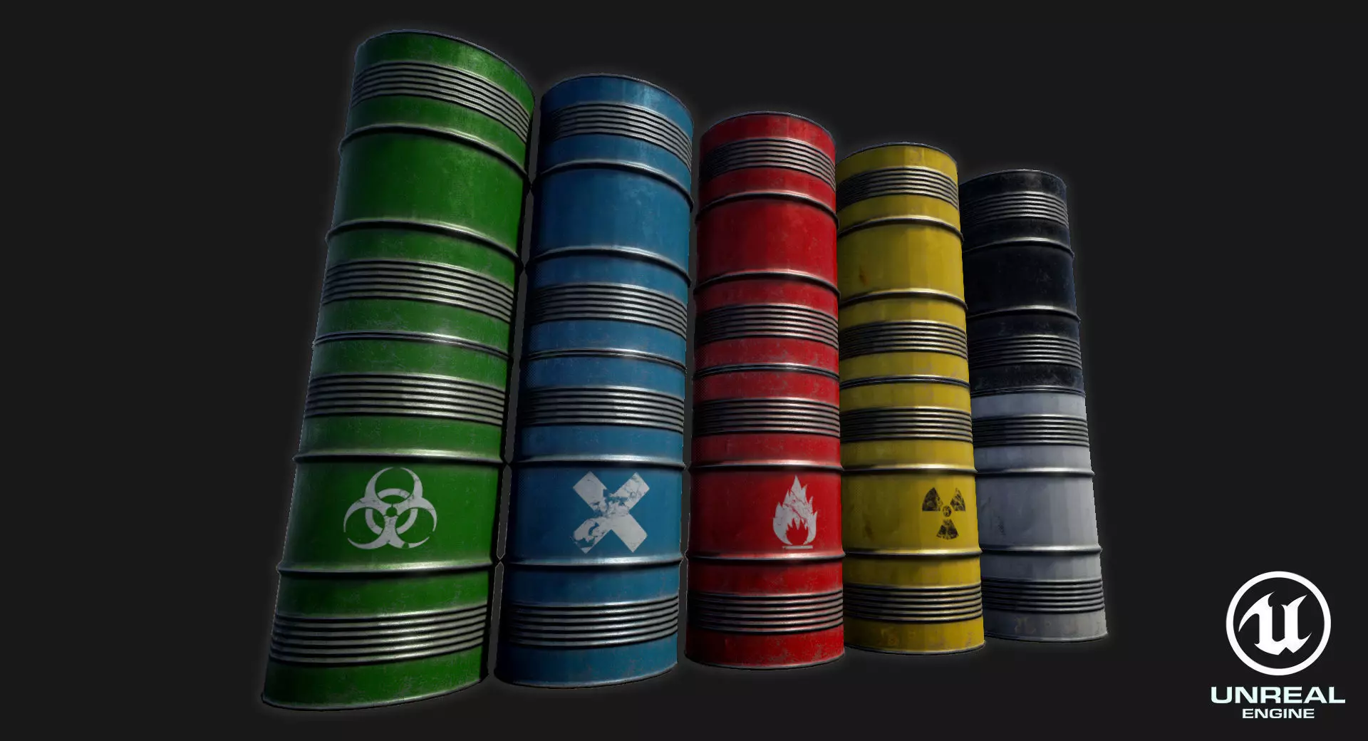Overview:This is a Low-poly, game ready Metal Barrel that comes in six colours plus four hazardous designs with worn and clean versions (Black, Blue, Green, Red, White, Yellow, Biohazard, Corrosive, Flammable, Radiation).Modelled in 3DS Max 2016. The normal map was baked from a high poly model for added detail.Files named using the Unreal Engine 4 Naming Convention.File uploaded as a packed .7z file.