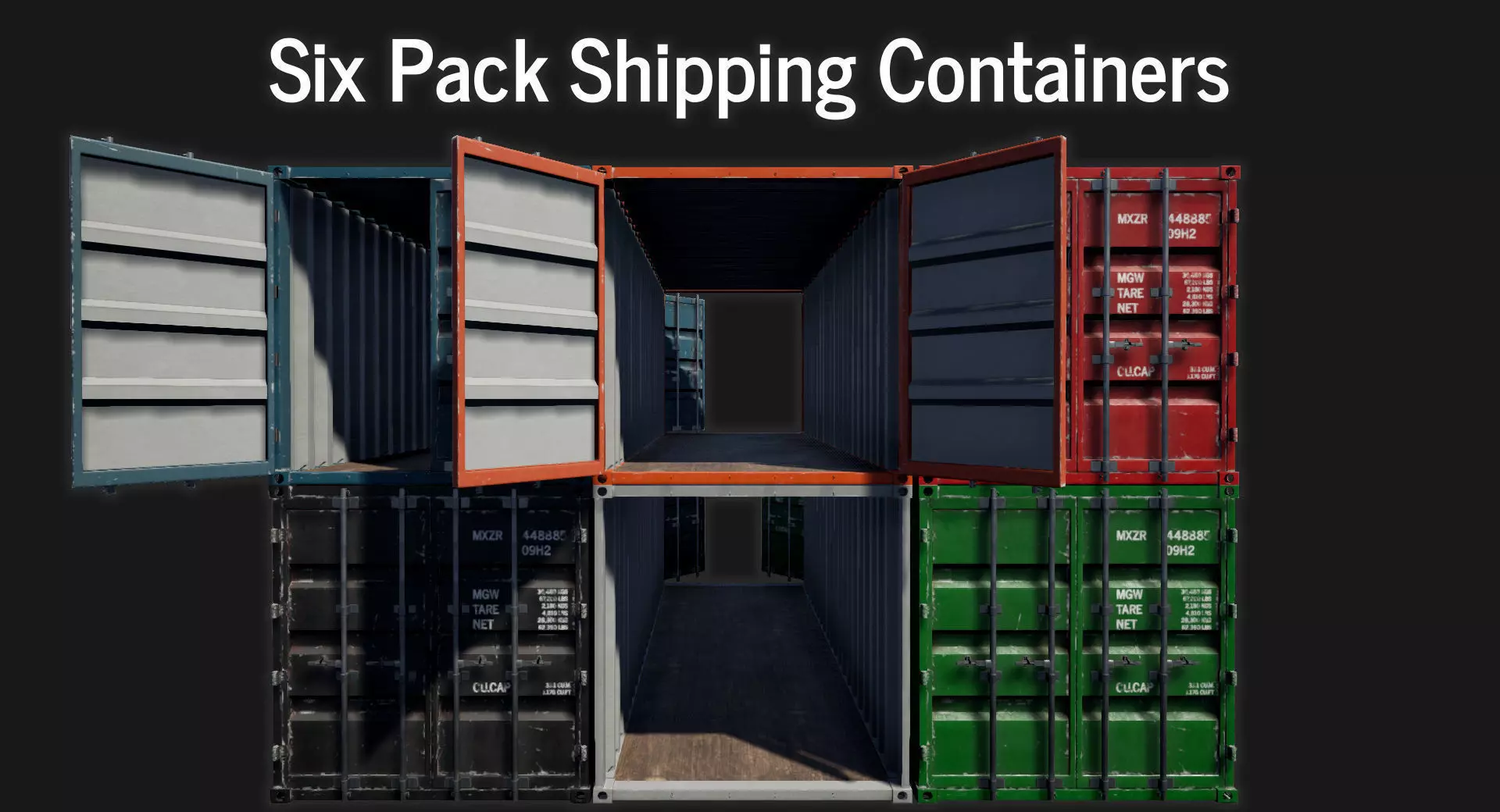 This is a Low-poly, game ready Shipping Container with six versions and six colours (Black, Blue, Green, Grey, Orange, Red)