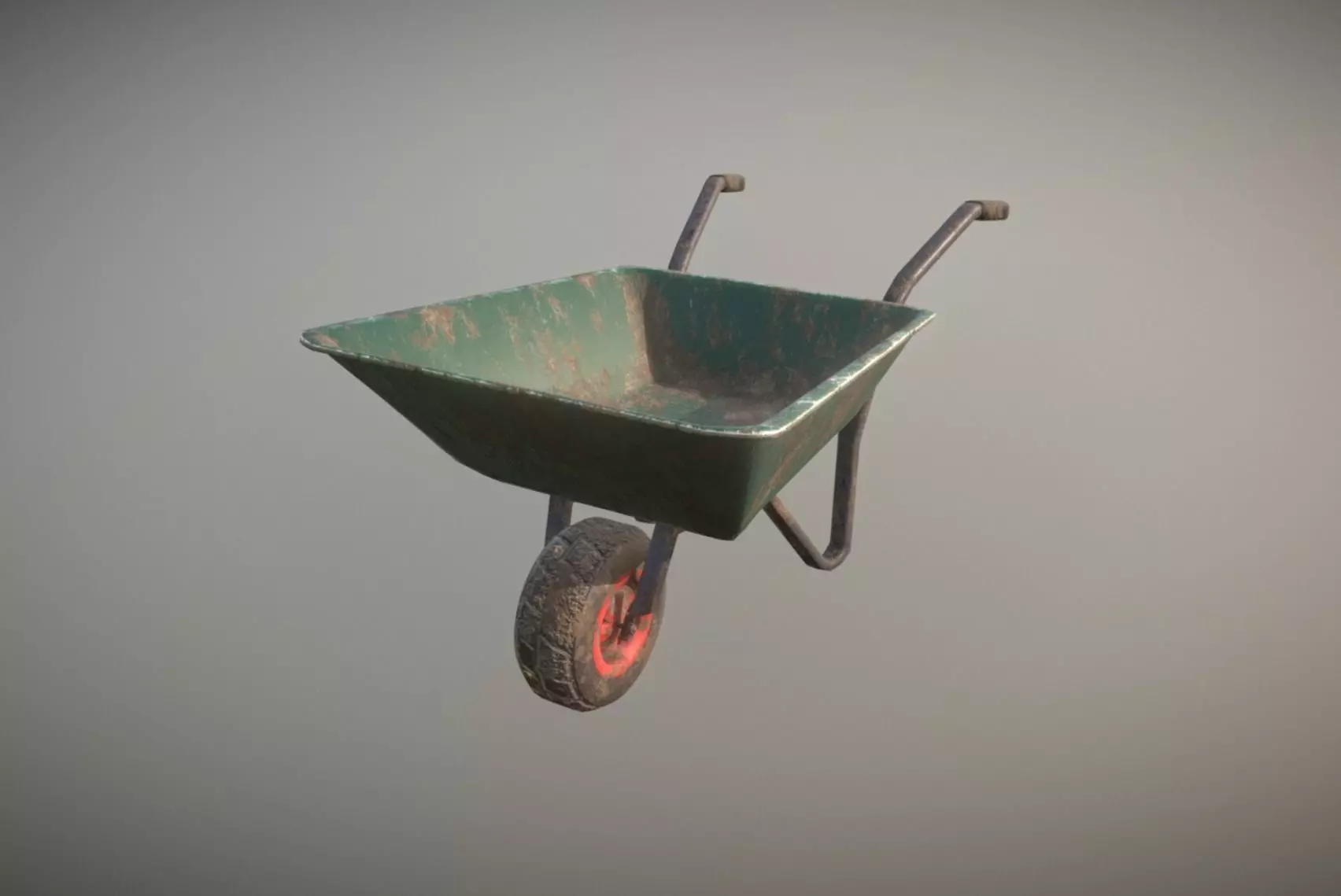 Low Poly Wheel Barrow Green Dirty Low-poly 3D model